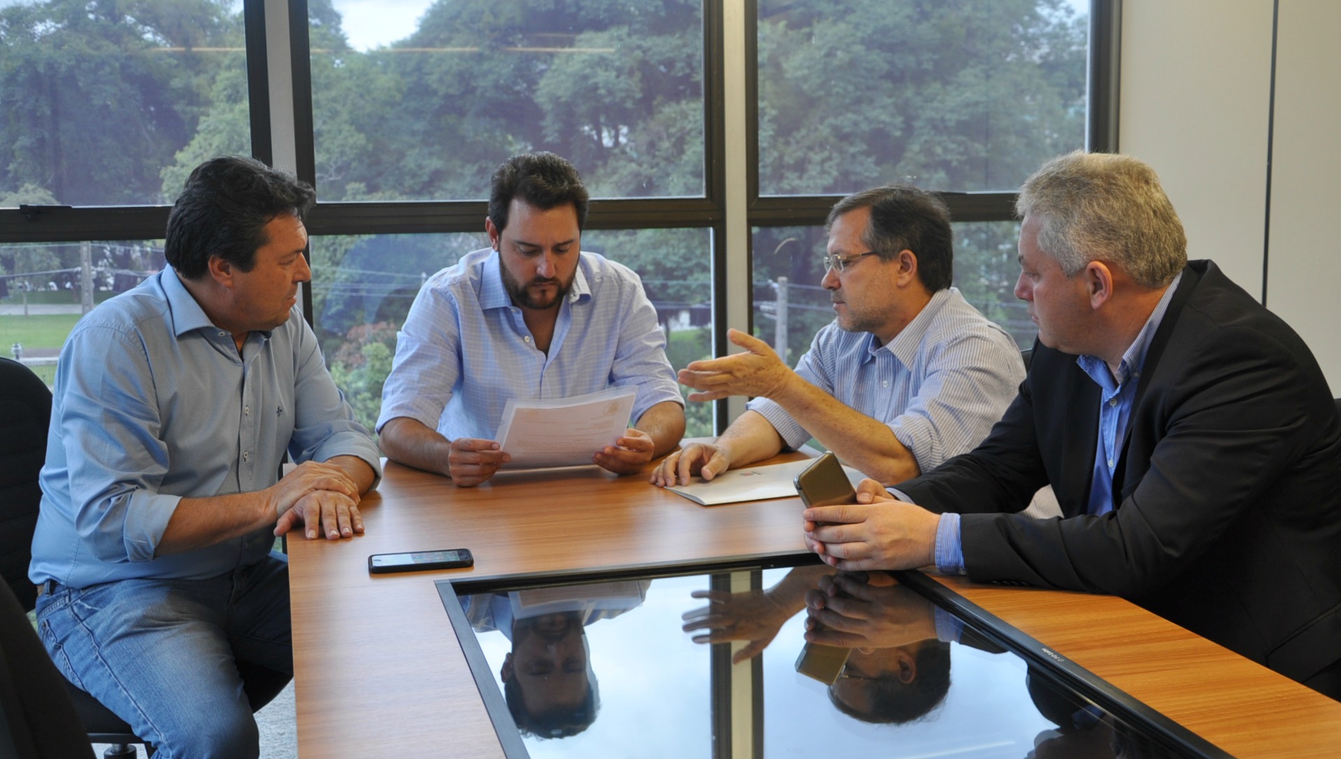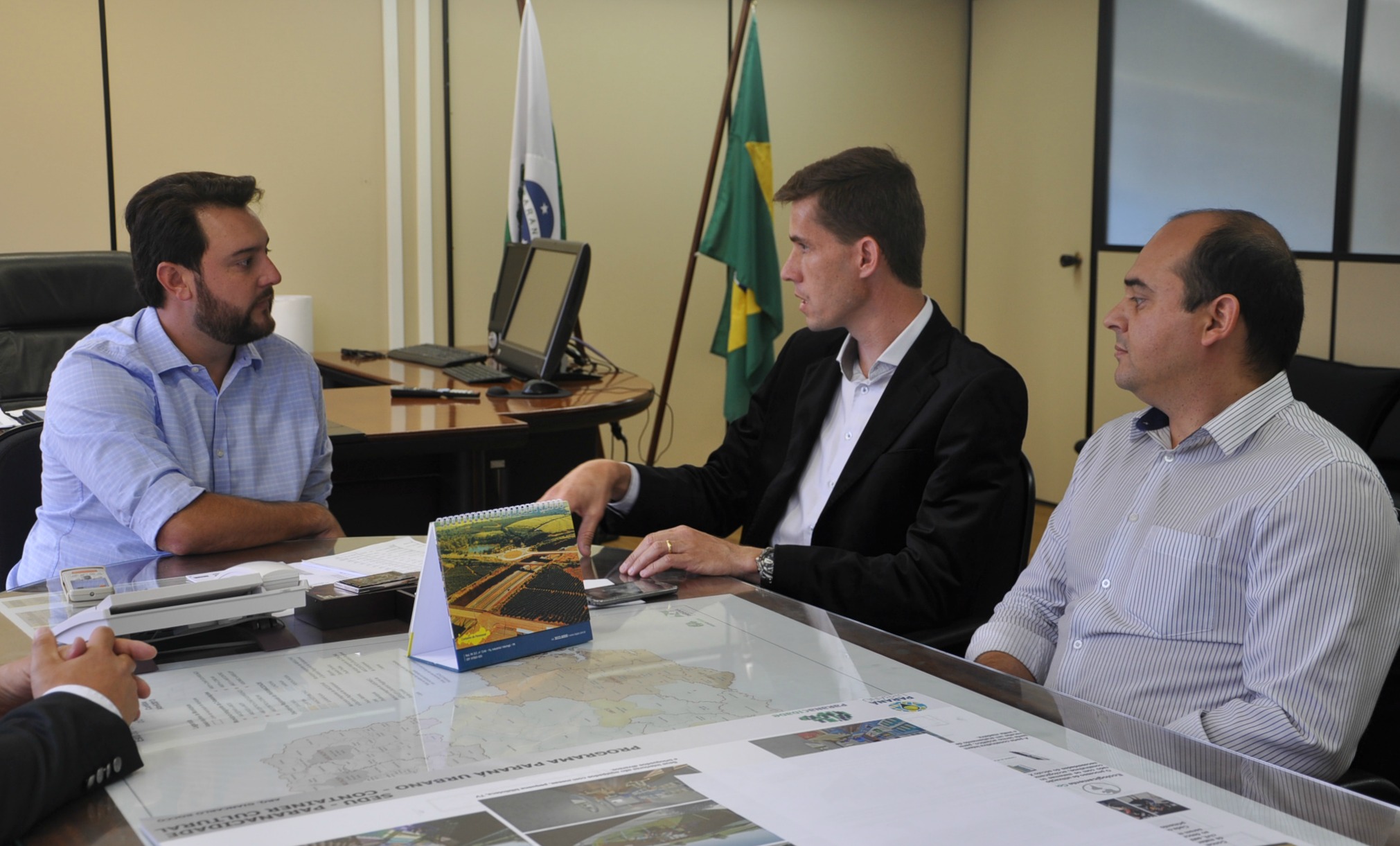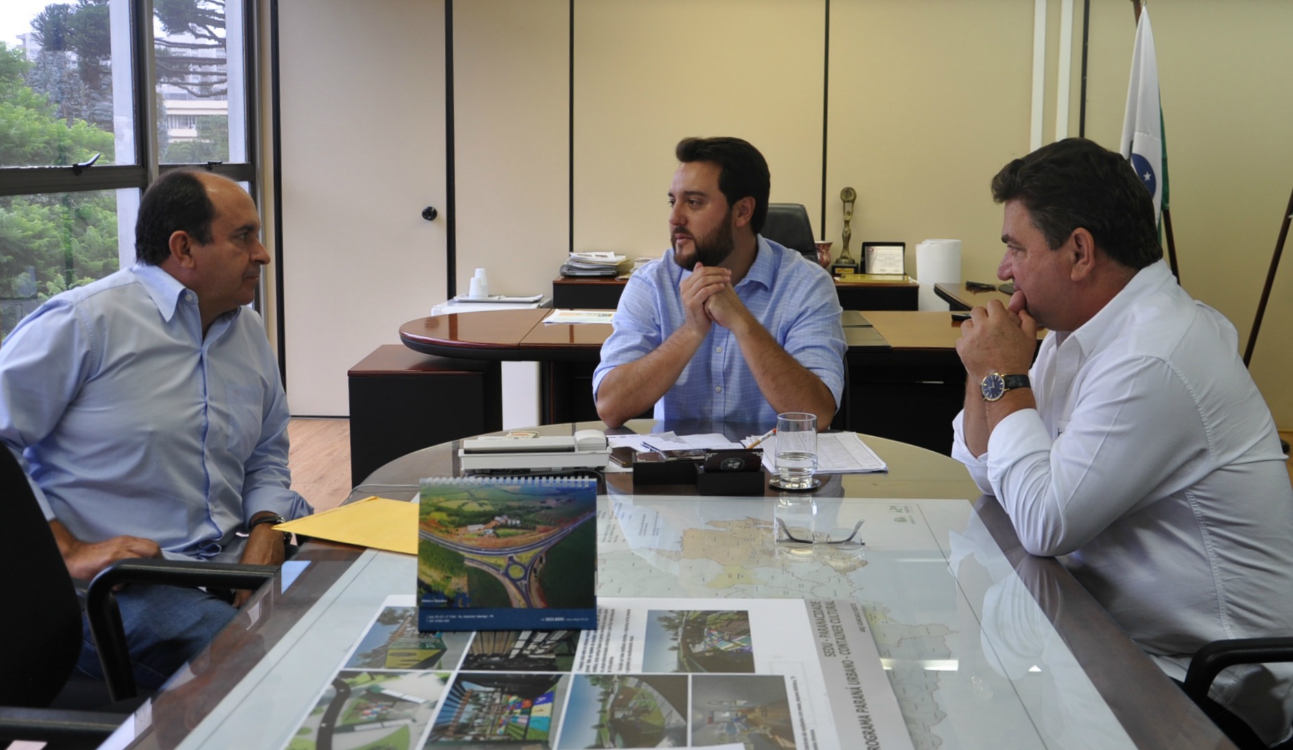 CAMPO MOURÃO - Ainda passaram pela SEDU, nesta terça-feira, em conversa com o secretário Ratinho Junior e Ricardo Muller, o prefeito de Campo Mourão, Tauillo Tezelli, acompanhado do deputado estadual Márcio Nunes e do secretário de Esporte e Turismo, Douglas Fabrício.