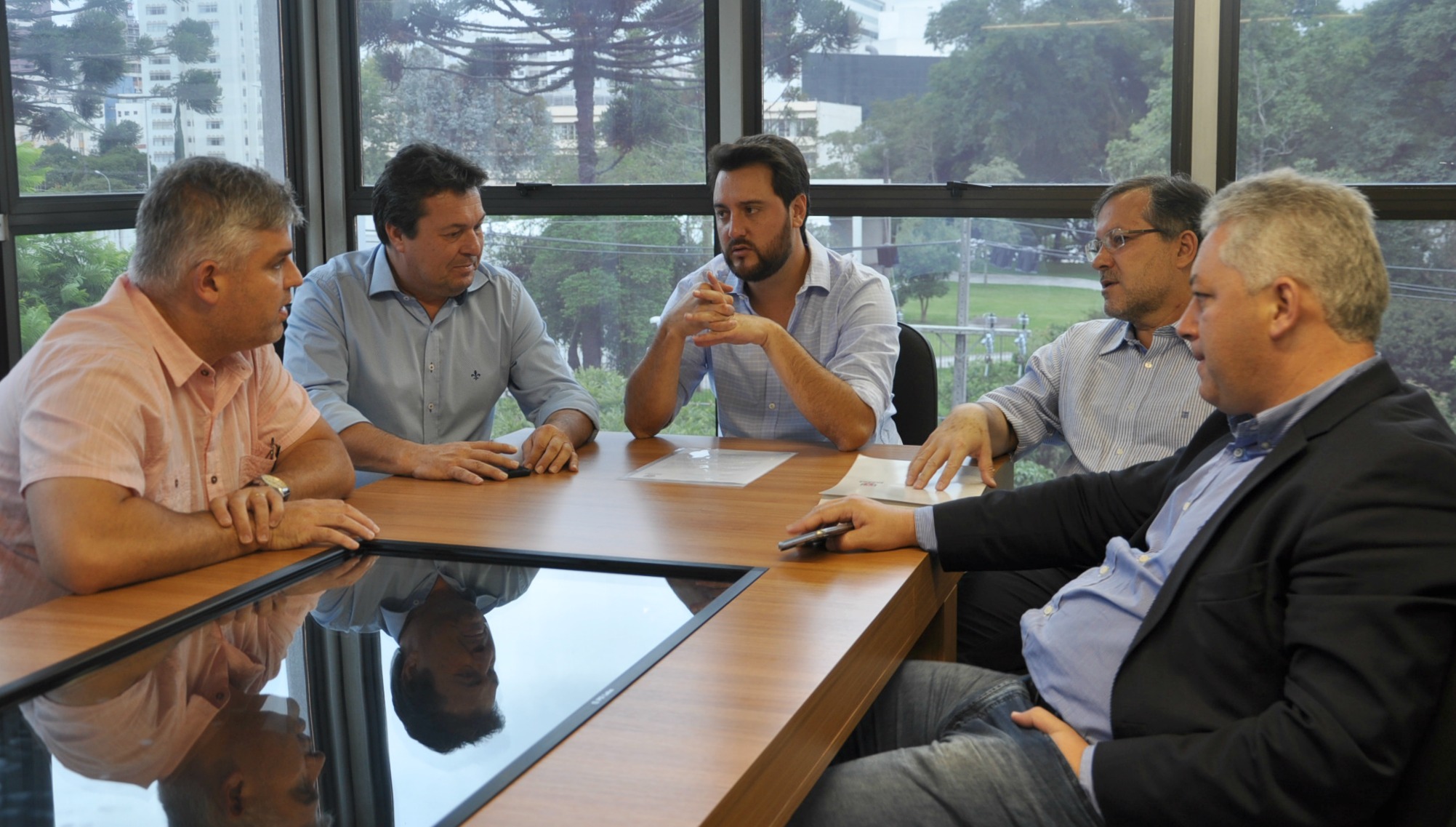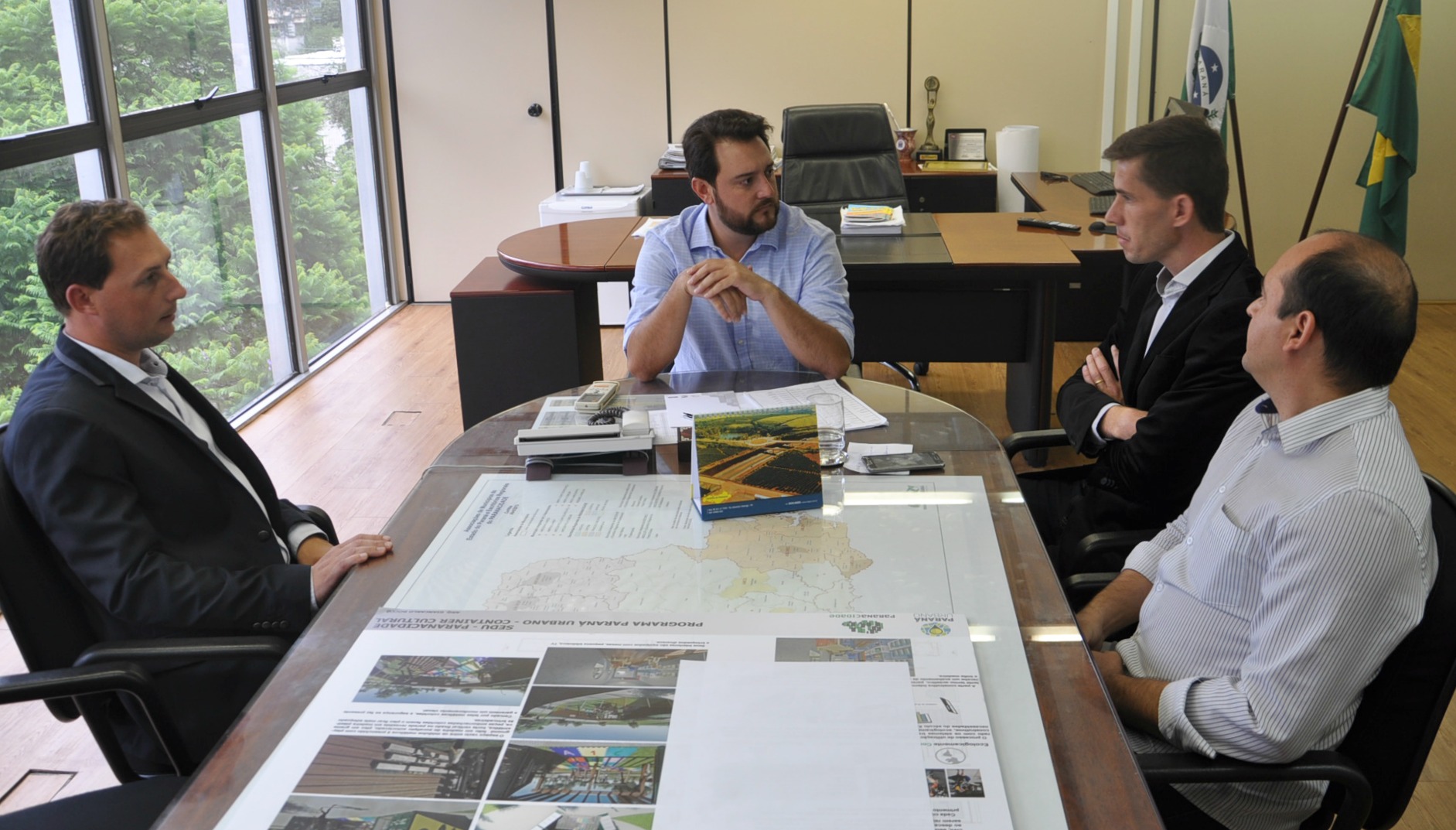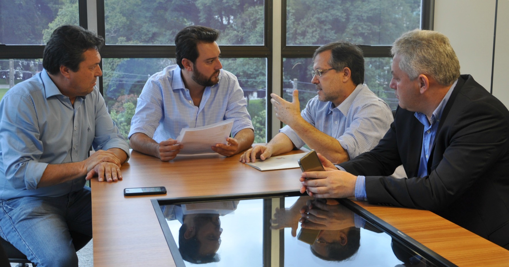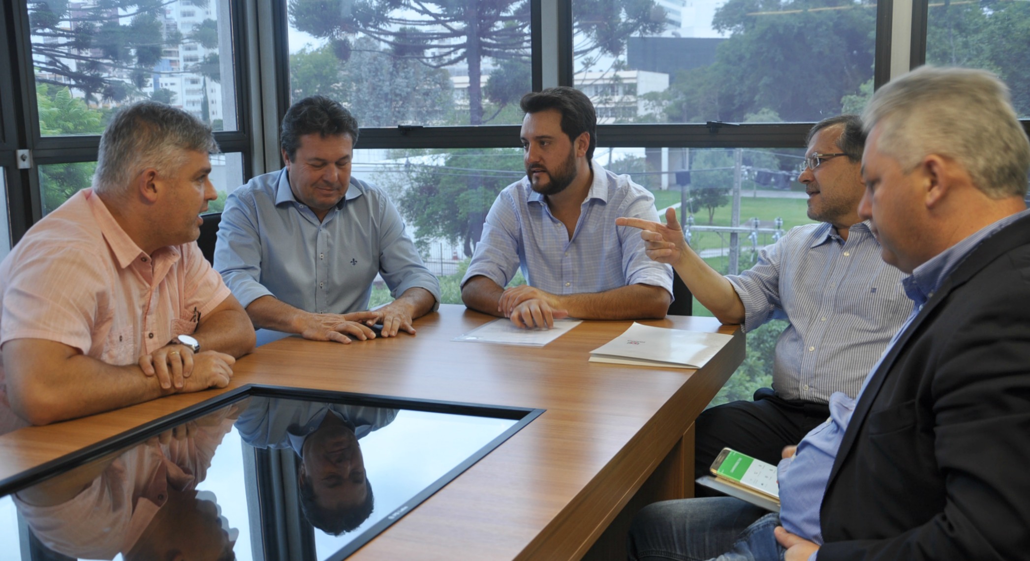 CAMPO MOURÃO - Ainda passaram pela SEDU, nesta terça-feira, em conversa com o secretário Ratinho Junior e Ricardo Muller, o prefeito de Campo Mourão, Tauillo Tezelli, acompanhado do deputado estadual Márcio Nunes e do secretário de Esporte e Turismo, Douglas Fabrício.