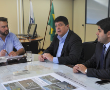 Ratinho Junior orientou ao prefeito sobre a melhor maneira de agir para conseguir autorização na Câmara Municipal para os financiamentos necessários. “Toda a documentação e os projetos também devem estar corretos. Depois, basta procurar o Escritório Regional do Paranacidade com tudo certo nas mãos e nós vamos dar todo o apoio preciso”, tranquilizou Ratinho Junior. Com o prefeito Brene, estava também o prefeito de Arapongas, Sérgio Onofre da Silva.