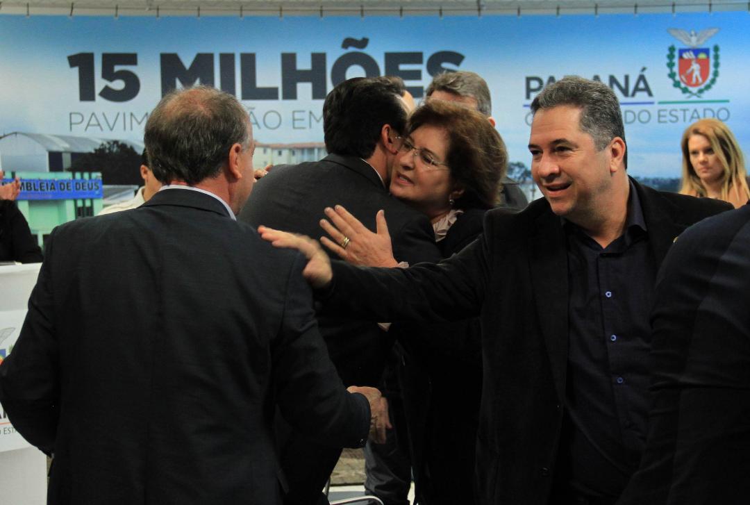 PRESENÇAS - Estiveram presentes na solenidade o vice-governador Darci Piana, o diretor do BRDE, Wilson Lipski; o presidente da COMEC, Gilson dos Santos; a presidente da Associação Comercial e Industrial de Colombo, Maria Parecida Trindade; a prefeita de Quitandinha, Maria Júlia Wojcik; os deputados estaduais Luiz Claudio Romanelli, Gilson de Souza, Marcel Micheletto, Galo e Delegado Recalcatti; além de secretários municipais, vereadores e empresários de Colombo.