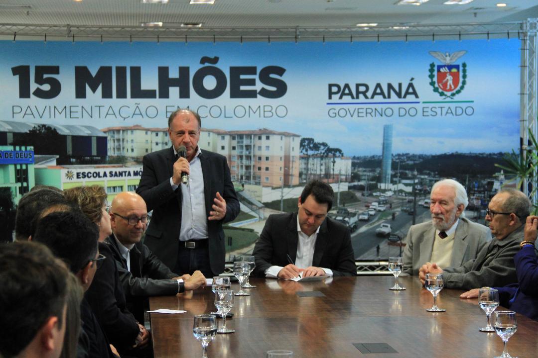 O município de Colombo, na Região Metropolitana de Curitiba, vai investir R$ 15,1 milhões em obras de melhorias urbanas. O investimento, que beneficia toda a população, formada por 240,8 mil habitantes, foi confirmado pelo governador Carlos Massa Ratinho Junior nesta quinta-feira, 04, no Palácio Iguaçu, em encontro com a presença do vice-governador Darci Piana, a prefeita Beti Pavin, o secretário de Desenvolvimento Urbano e Obras Públicas, João Carlos Ortega, e lideranças daquela Região.