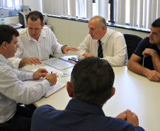 Desde às 8 horas da manhã, desta quarta-feira, 13, mais de uma dezena de prefeitos, de diversas Regiões do Paraná, foram recebidos pelos secretário do Desenvolvimento Urbano, João Carlos Ortega, e pelo diretor-geral, Chico Santos. Eles revisaram projetos em andamento, entregaram pedidos de liberação de recursos para obras e conversaram sobre novos projetos. A agenda mostra a dinâmica do atendimento na SEDU e o ânimo dos prefeitos com a política do Governo Ratinho Junior.