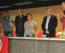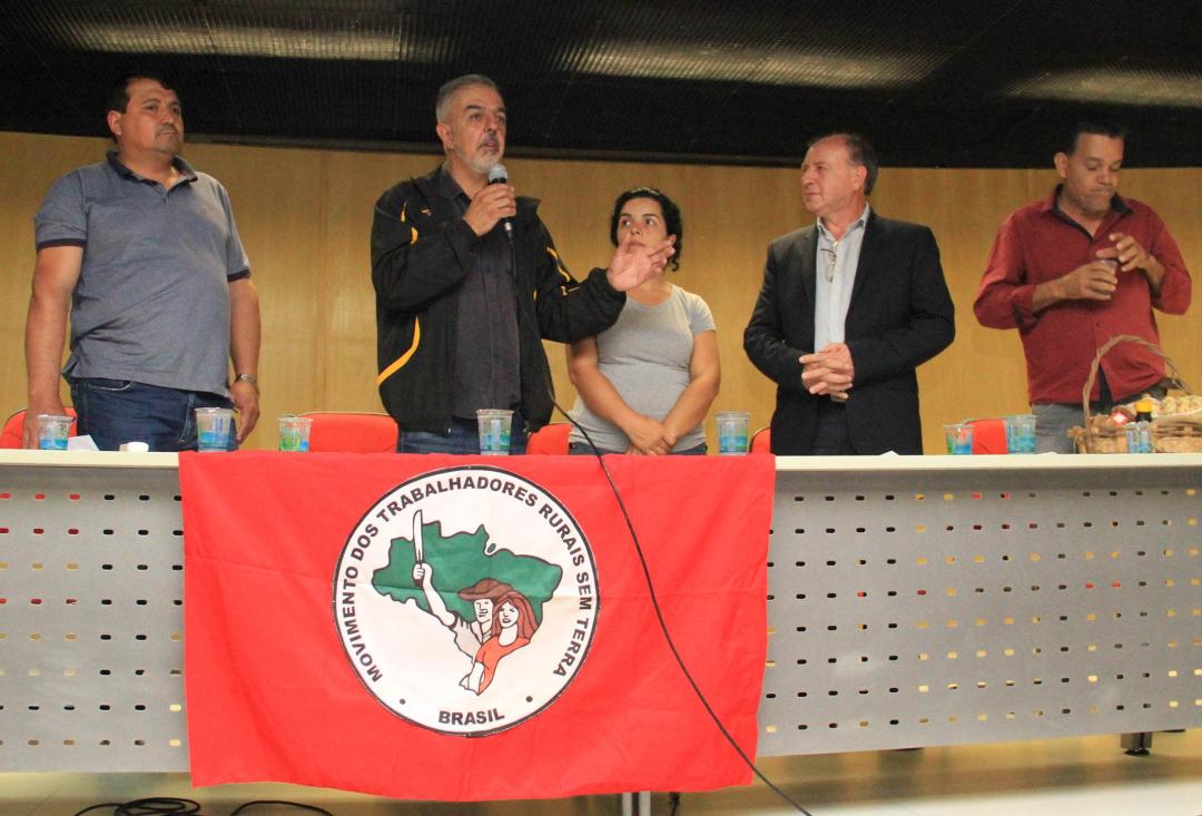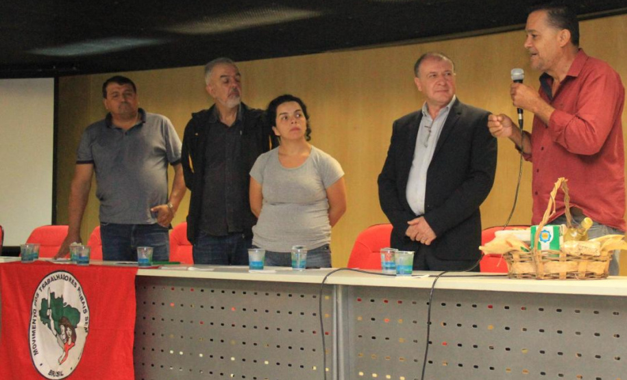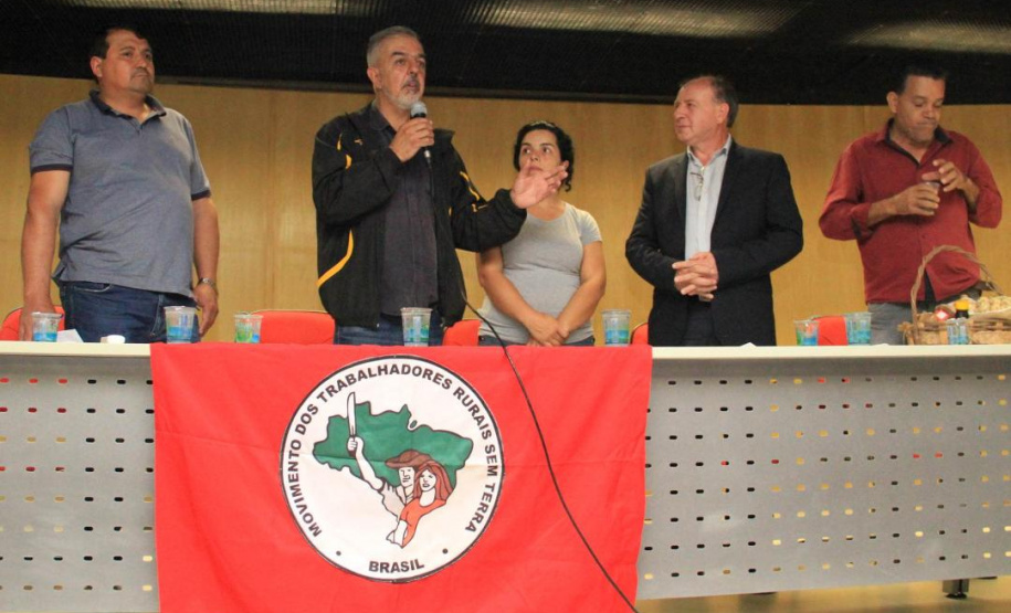 Os 35 anos de luta dos trabalhadores, pelo direito a terra, foram lembrados pelo coordenador do Movimento dos Sem Terra (MST), no Paraná, Roberto Baggio, na manhã desta terça-feira, 09, no Auditório Mário Lobo, no Palácio das Araucárias, em Curitiba. Lideranças, representantes das 23 mil famílias assentadas e organizadas no Paraná, se reuniram com o secretário do Desenvolvimento Urbano (SEDU), João Carlos Ortega, e apresentaram a ele uma pauta de reivindicações como a necessidade de um Programa Estadual de Obras para a infraestrutura social nas comunidades rurais. Atualmente o Paraná tem 380 áreas de assentamentos em todas as Regiões do Estado, com 22 Cooperativas de famílias sob a responsabilidade de 600 lideranças. Nos pré-assentamentos há 10 mil famílias, posseiras e praticando agricultura familiar.