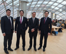 EM CHICAGO - Na viagem, Ratinho Junior e Guto Silva também firmaram convênio com a Universidade de Chicago, em Illinois. Lá, os dois paranaenses participaram de um seminário sobre eficiência na gestão pública. Ambos foram palestrantes e debateram com alunos da graduação, especialização, mestrado e doutorado daquela Universidade as políticas públicas. Ambos entendem que esta troca de experiência internacional possibilita o fomento de novos projetos bilaterais, desenvolvendo a gestão das políticas urbanas nas obras desenvolvidas pela SEDU.
