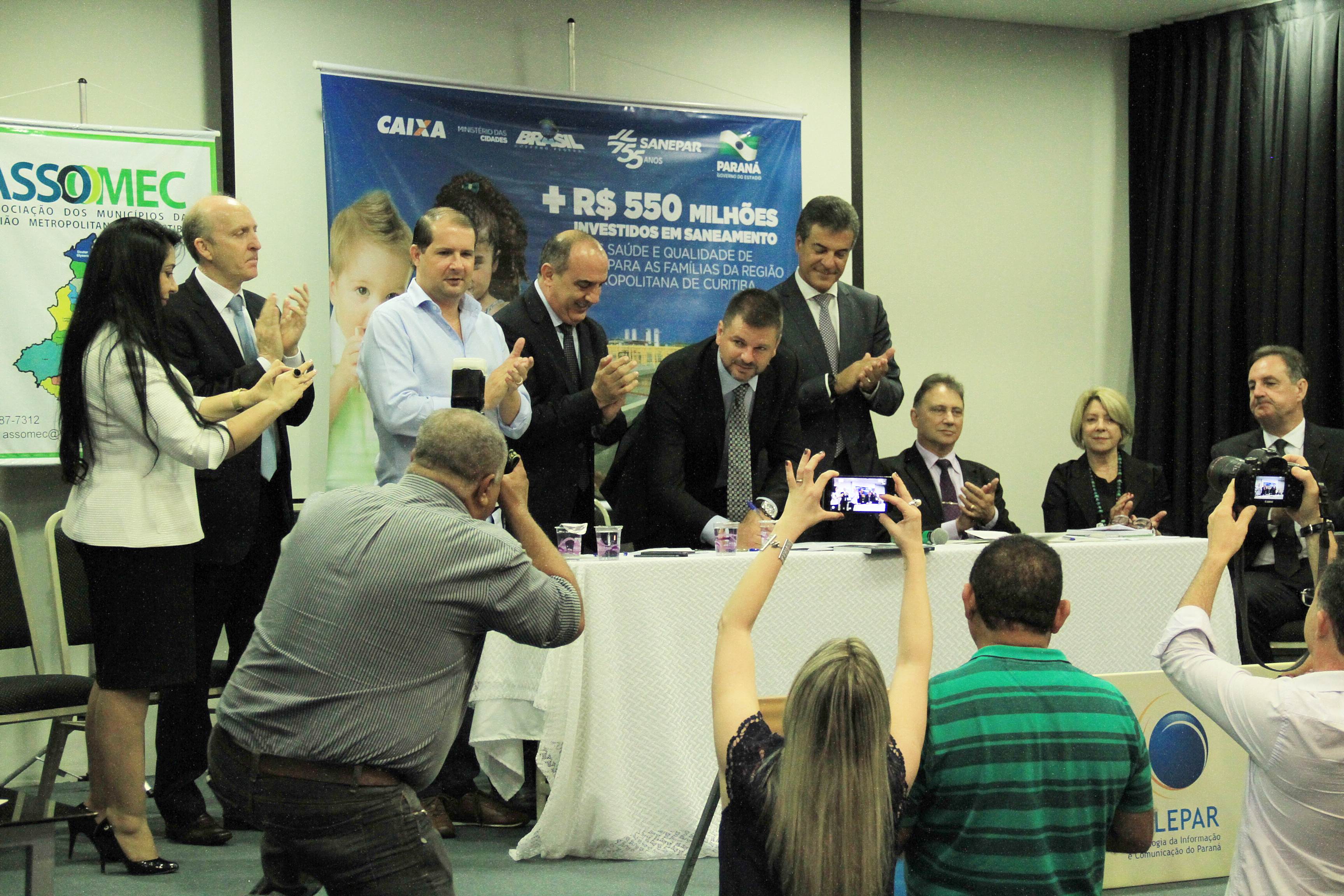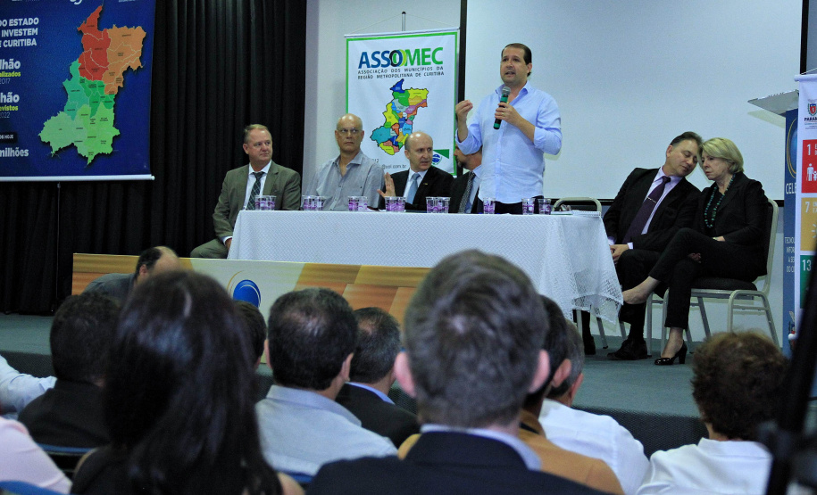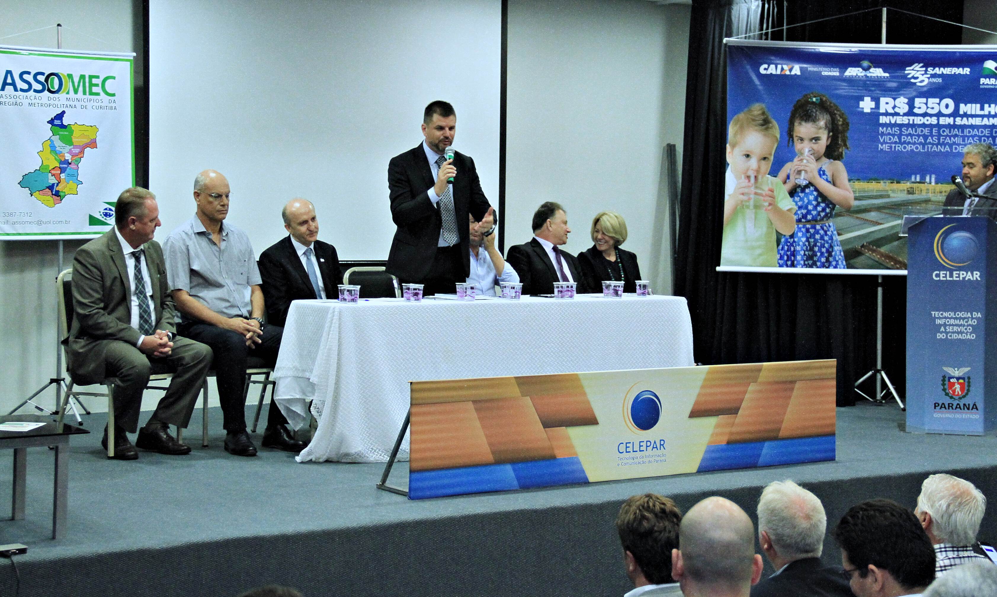 No meio do encontro, chegou o governador Beto Richa. O presidente da CELEPAR, Jackson Leite, foi representado pelo diretor de Mercado, Nelson Garcia, que deu as boas vindas aos presentes. Também falou o presidente da SANEPAR, Mounir Chaowiche. Estavam também presentes a assessora de Relações Institucionais da Fomento Paraná, Emília Belinati, e a deputada estadual Mara Lima, entre outras personalidades.