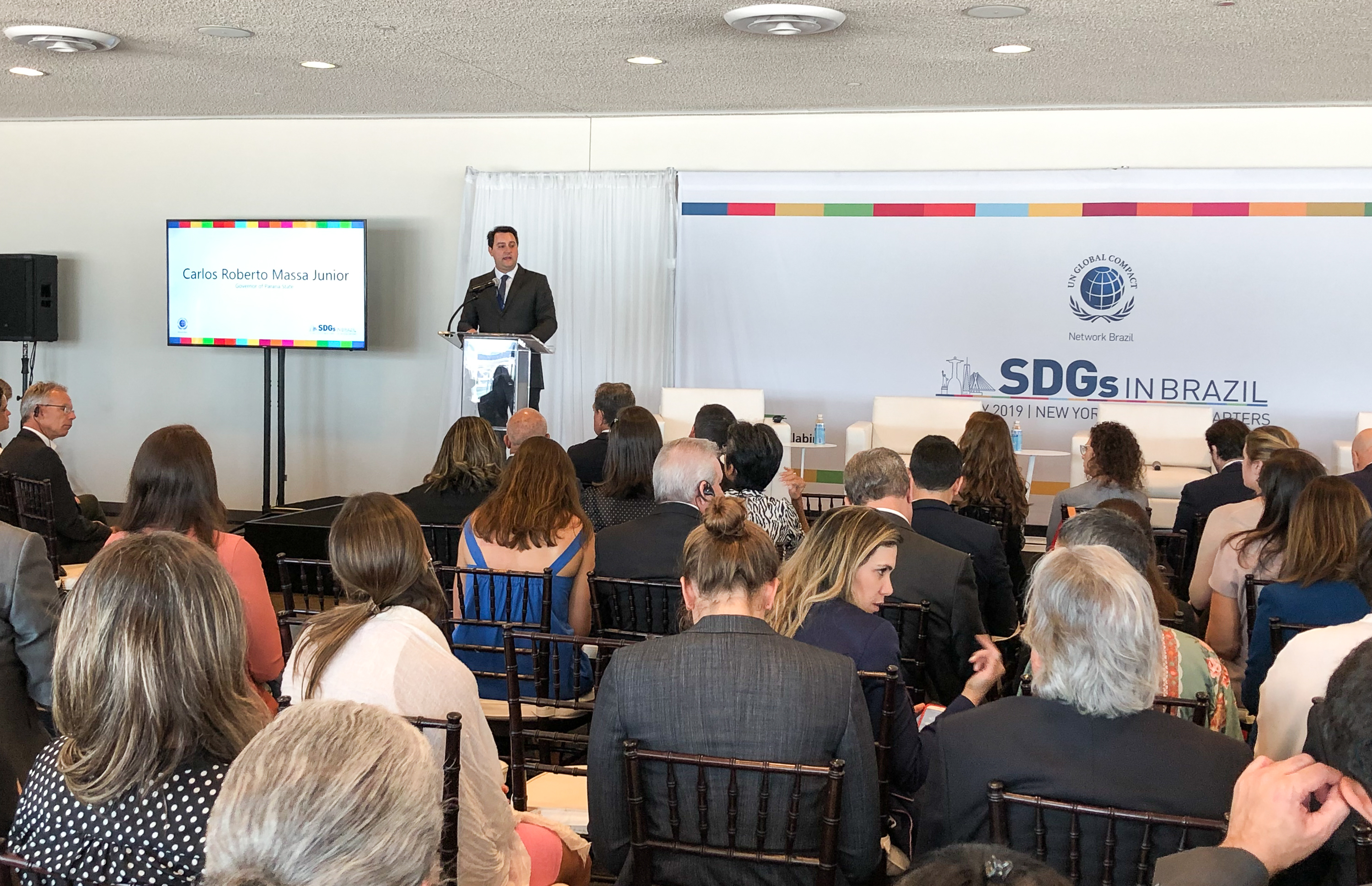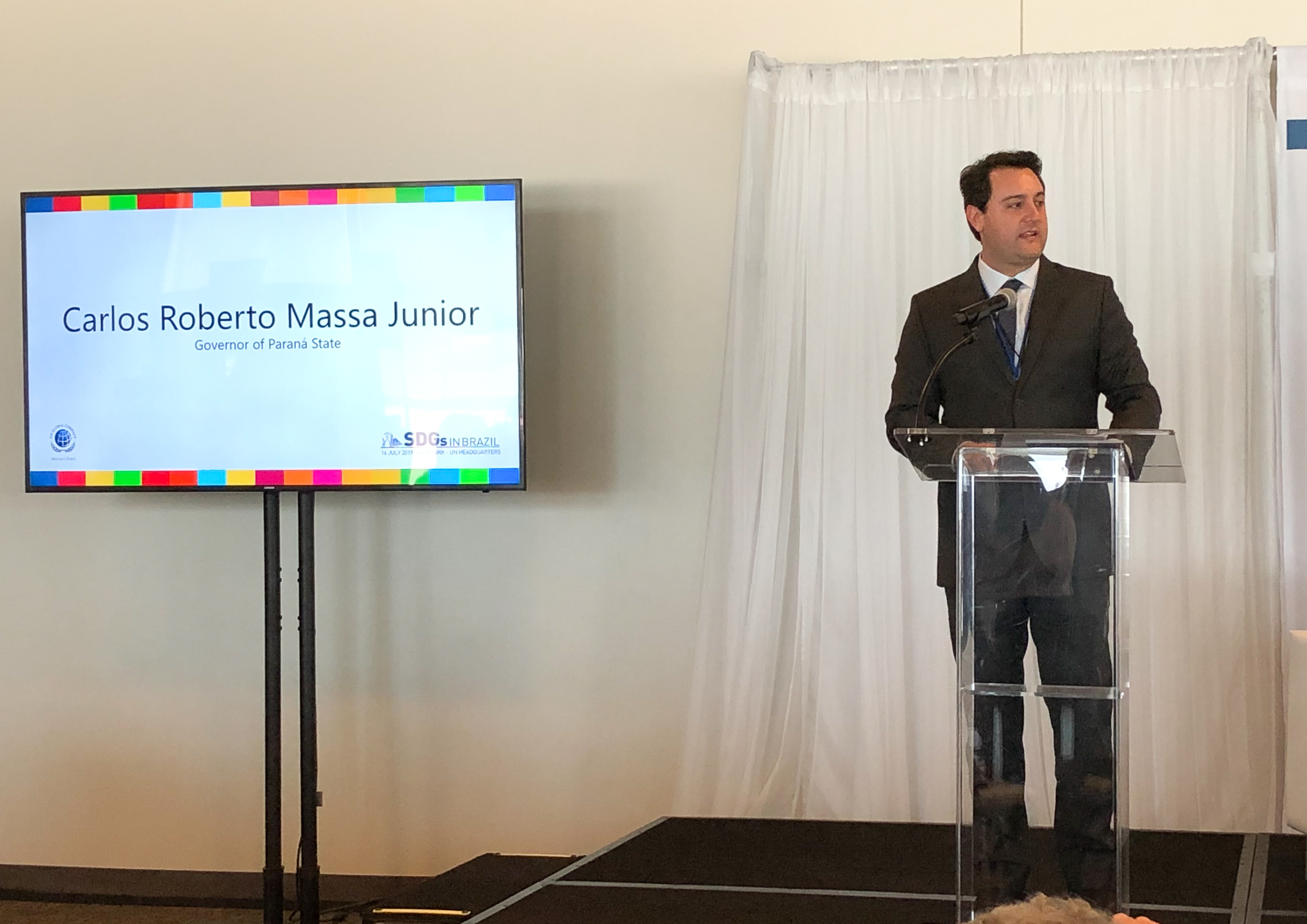 Único governador brasileiro a participar do High-level Political Forum (HLPF), Fórum das Nações Unidas sobre Desenvolvimento Sustentável, que acontece em Nova York, com foco no Pacto Global, o governador Carlos Massa Ratinho Junior destacou nesta terça-feira, 16, que já foram firmadas, inclusive pela Secretaria do Desenvolvimento Urbano e Obras Públicas (SEDU) e outras instituições, parcerias com 248 dos 399 municípios para adotarem a agenda 2030. O presidente do Superior Tribunal de Justiça (STJ), ministro João Otávio de Noronha, integrou a mesma rodada de apresentações. O encontro reúne chefes de Estado e lideranças mundiais da sociedade civil.