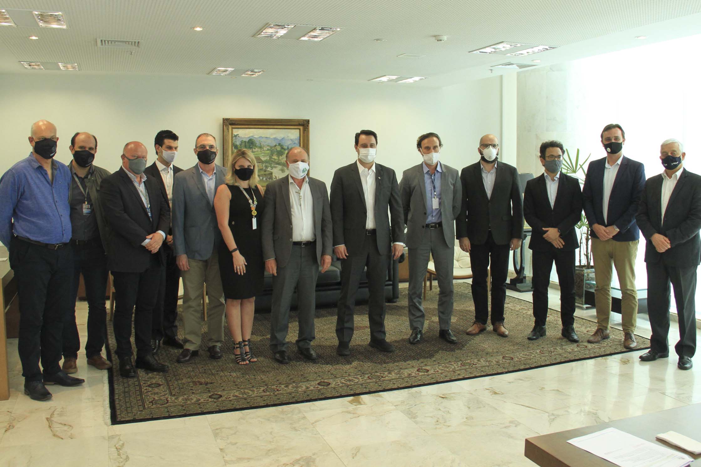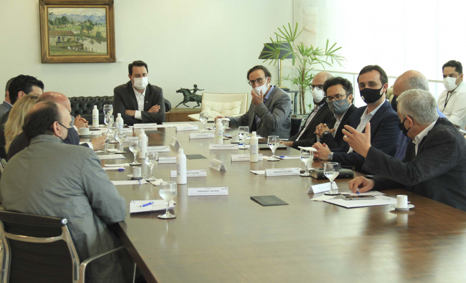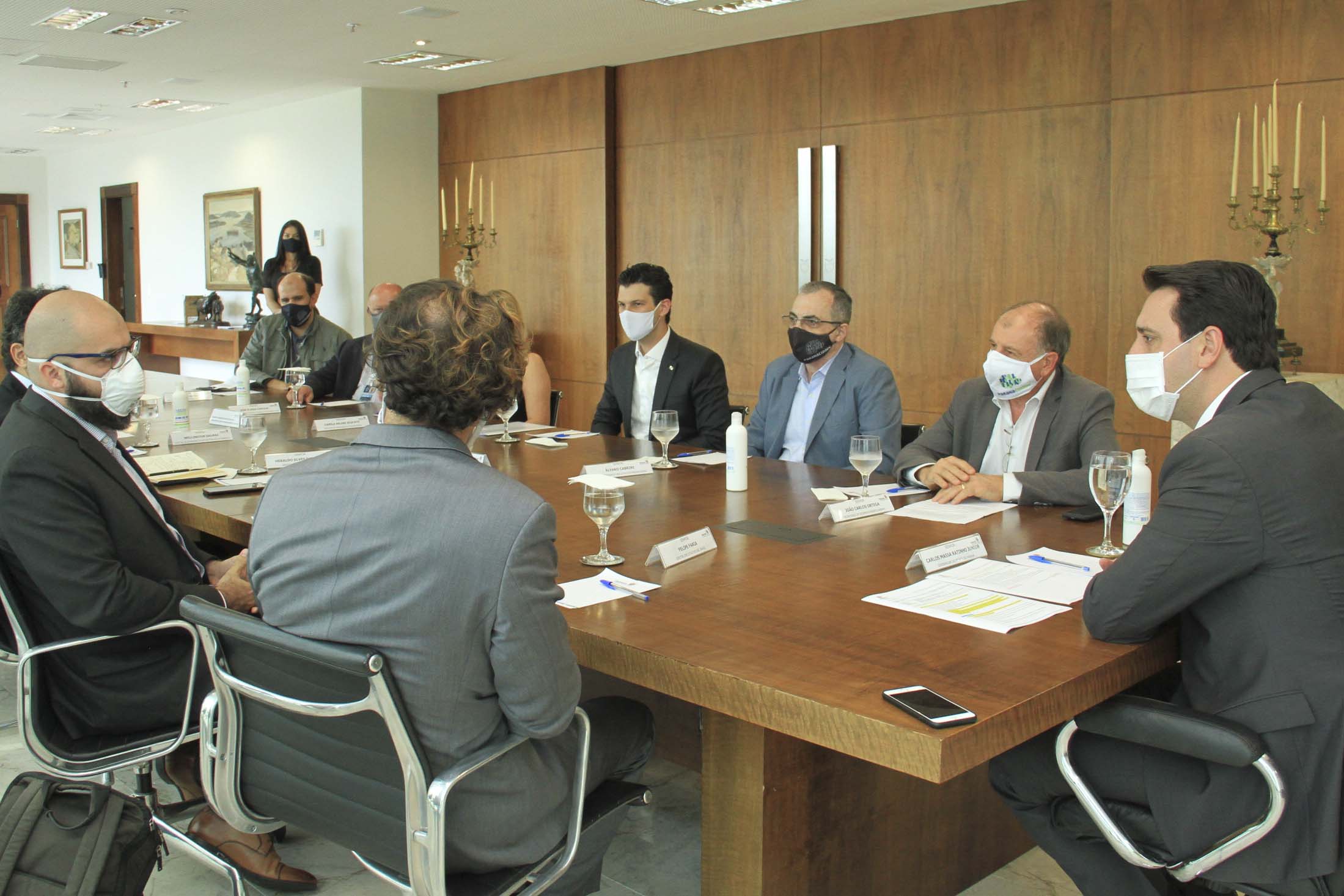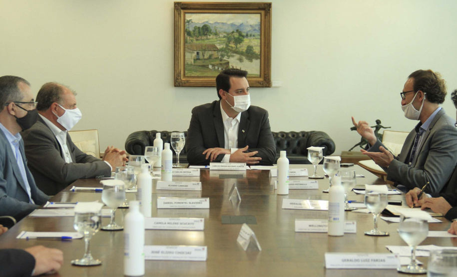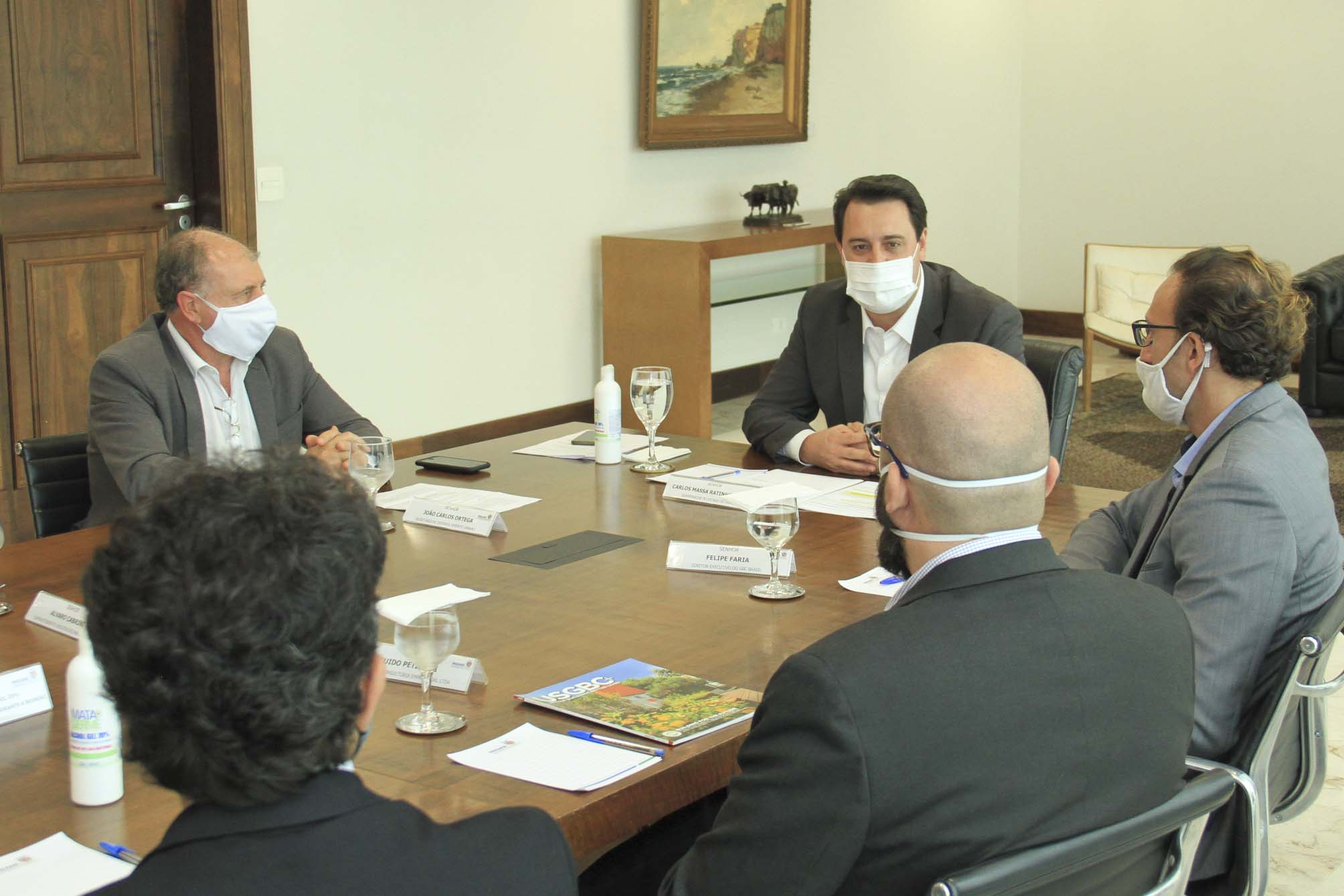 Participaram da reunião com o governador, além do secretário Ortega e da diretora Camila, o CEO do Green Building Council Brasil, Felipe Faria; o superintendente executivo do Paranacidade, Álvaro Cabrini; o diretor de Administração e Finanças do Paranacidade, José Elizeu Chociai; o presidente da Copel, Daniel Pimentel Slaviero; o diretor presidente da Fomento Paraná, Heraldo Alves das Neves; o diretor de Operações do Setor Público da Fomento Paraná, Wellington Dalmaz; o representante da Petinelli Consultoria Empresarial, Guido Petinelli; o assessor Parlamentar e Empresarial do Conselho Regional de Engenharia e Agronomia do Paraná (CREA-PR), Euclésio Finatti; e os analistas de Desenvolvimento Municipal do Paranacidade Fernando Caetano e Geraldo Luiz Farias.