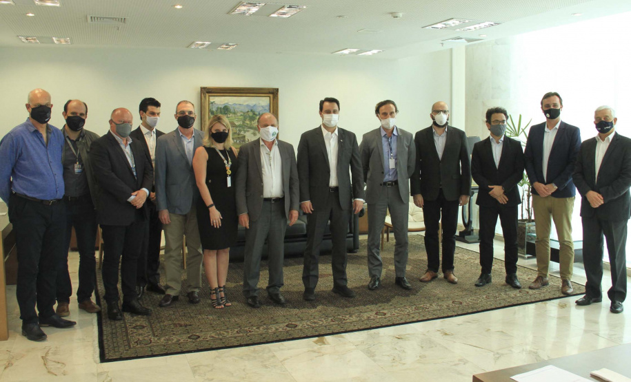Representantes de todas as entidades públicas e empresas que participam da implantação de sistemas de energia limpa nos edifícios públicos do Paraná estiveram reunidos, na tarde desta segunda, 26, no Palácio Iguaçu. Eles foram recebidos pelo governador Carlos Massa Ratinho Junior, que fará pronunciamento na abertura da Conferência Internacional GreenBuilding Brasil 2020, no próximo dia 16 de novembro. No encontro desta semana, foi apresentado ao governador um relatório do processo que levará, em uma primeira fase, a autossuficiência energética para 246 prédios públicos, sedes de Prefeituras, Creches e Escolas Municipais.