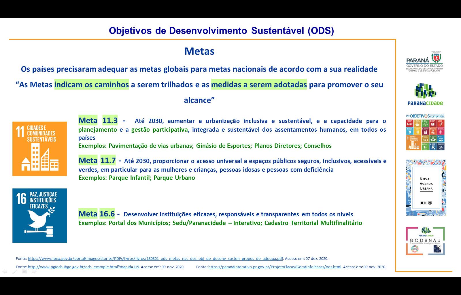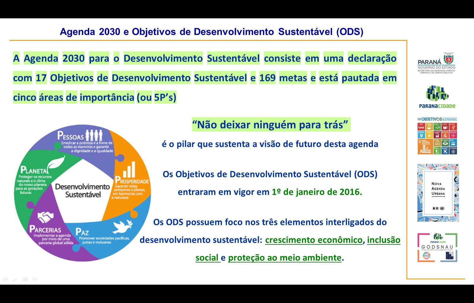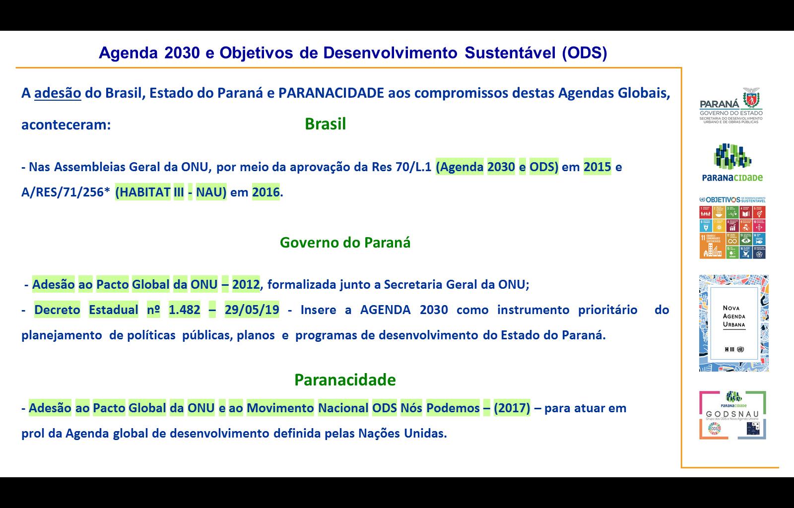Os encontros foram organizados pelo GODSNAU, Grupo de Colaboradores da Agenda 2030 e seus Objetivos de Desenvolvimento Sustentável e da Nova Agenda Urbana no PARANACIDADE.