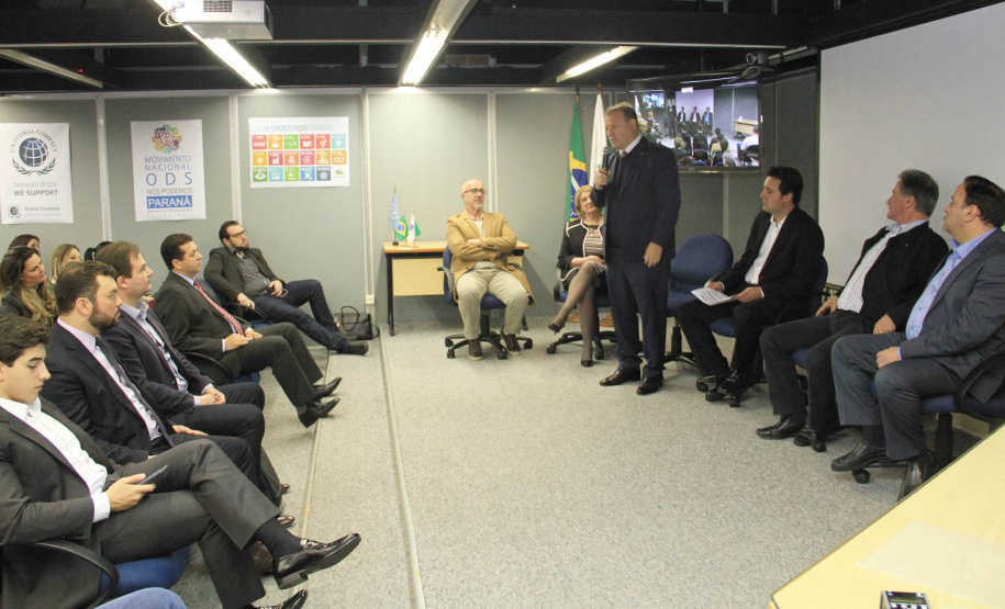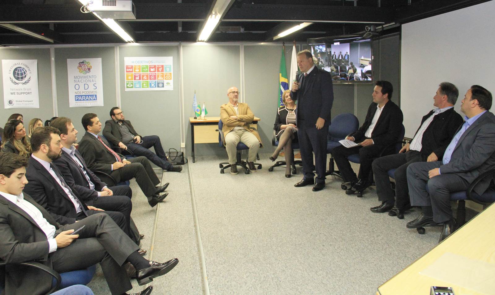Na manhã desta quarta-feira, 02, o secretário do Desenvolvimento Urbano (SEDU), Carlos Massa Ratinho Junior, assinou o Certificado de Adesão do Serviço Social Autônomo (Paranacidade) ao Movimento Nacional Objetivos de Desenvolvimento Sustentável (ODS), para a Agenda 2030. Já estão comprometidos com os ODS líderes mundiais de 193 Estados Membros da ONU, que participaram da Cúpula das Nações Unidas sobre Desenvolvimento Sustentável, em setembro de 2015. Assim, “com este documento, nós todos, nossa equipe de profissionais, assumimos o compromisso de buscar efetivar os 17 objetivos, os princípios e as metas para chegar ao desenvolvimento sustentável e para atender as necessidades da atual e das futuras gerações. Vamos deixar nossas digitais na construção deste sonho”, disse Ratinho Junior.
