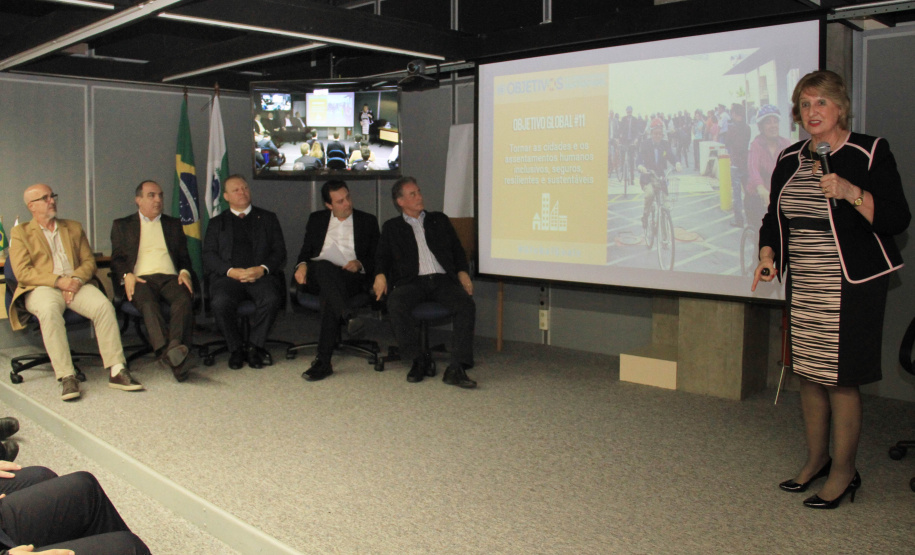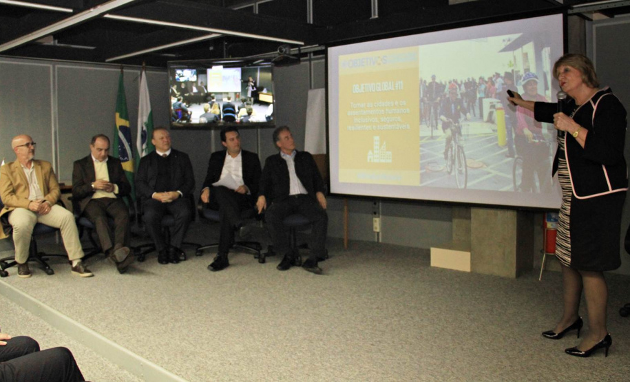 Este compromisso, com os 17 objetivos, incluem a luta para erradicar a pobreza; chegar à fome zero e à agricultura sustentável; à saúde e bem estar; educação de qualidade; igualdade de gênero; água potável e saneamento; energia limpa e acessível; trabalho decente e crescimento econômico; indústria, inovação e infraestrutura; a redução da desigualdade; cidades e comunidades sustentáveis; consumo e produção responsáveis; ação contra a mudança global do clima; vida da água, vida terrestre; paz, justiça e instituições eficazes; parcerias e meios de implementação. Sobre todos eles falou a representante da ONU, presidente da Organização Mundial das Famílias, Deise Kusztra. “São milhões de possibilidades, respeitando cada cultura, as pessoas, o Planeta, a prosperidade, parceria e paz entre os povos”, resumiu Kusztra. E Ratinho Junior reforçou: “a partir de agora, vamos ser parceiros no alcance dessas metas”.