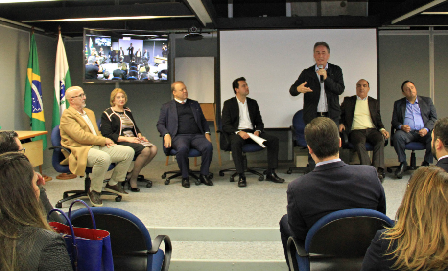 PARCERIAS - Do evento também participaram o diretor geral da SEDU, João Carlos Ortega, diretores do Paranacidade, mais os presidentes da Sanepar, Mounir Chaowiche; e o da Copel, Antonio Sergio de Souza Guetter; ambos da Secretaria Executiva do Movimento ODS. Ainda, o presidente da Frente Parlamentar em Defesa dos ODS, secretário para Assuntos Estratégicos e da Secretaria de Mobilização do Movimento “Nós Podemos Paraná”, Edgar Bueno; o presidente da Comissão de Educação da Assembleia Legislativa do Paraná, deputado estadual Hussein Bakri; o conselheiro do Tribunal de Contas do Paraná, Fernando Guimarães.