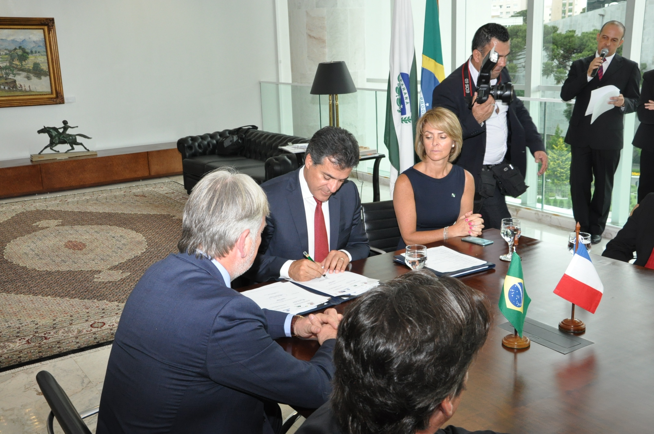 Pelo Paraná, assinaram também os secretários do Desenvolvimento Urbano (SEDU), João Carlos Ortega; o do Meio Ambiente e Recursos Hídricos (SEMA), Antônio Caetano de Paula Júnior; os diretores-presidentes da Fomento Paraná, Juraci Barbosa Sobrinho, e da Companhia de Saneamento do Paraná (Sanepar), Fernando Ghignone. Após assinatura da declaração de intenções que garante ao projeto o investimento de quase R$ 150 milhões, ou 49 milhões de euros, a comitiva de empresários franceses de diversas áreas, que acompanhou o evento, se apresentou. Entre eles, o vice-presidente da Renault do Brasil, Alain Tissier, disse: “O Paraná é uma terra boa para fazer negócios. Às vezes é um pouco conturbada, mas é um lugar muito bom para investir”, testemunhou.