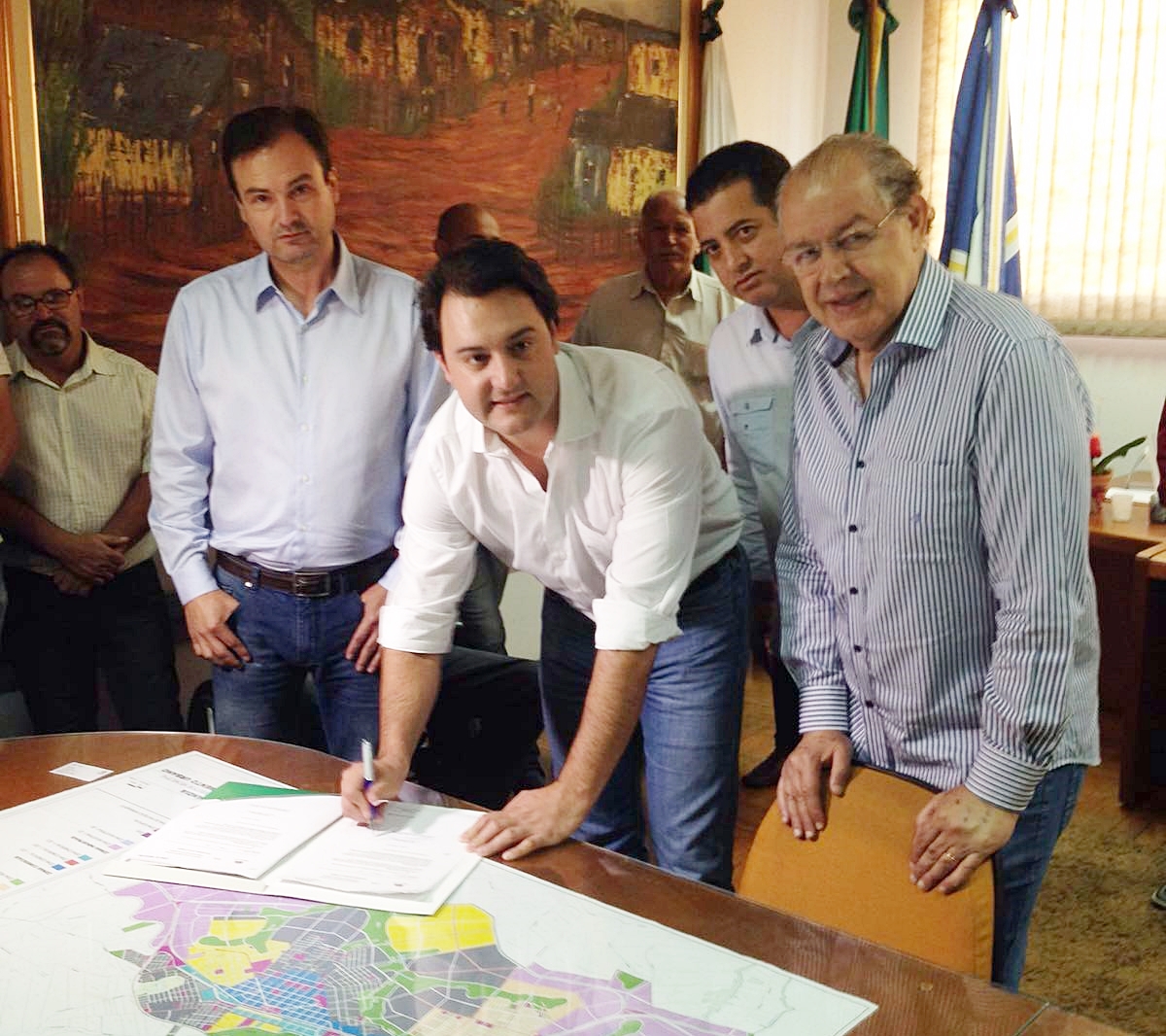 Em Rolândia, às 16 horas, no gabinete do prefeito Luiz Francisconi Neto, localizado na Avenida Presidente Bernardes, 809, no centro, Ratinho Junior assinou documento que garante R$ 1.676.471,10, pelo Sistema de Financiamento aos Municípios (SFM), para a primeira etapa de urbanização da Avenida Hungria – no Parque Industrial Barra Grande.