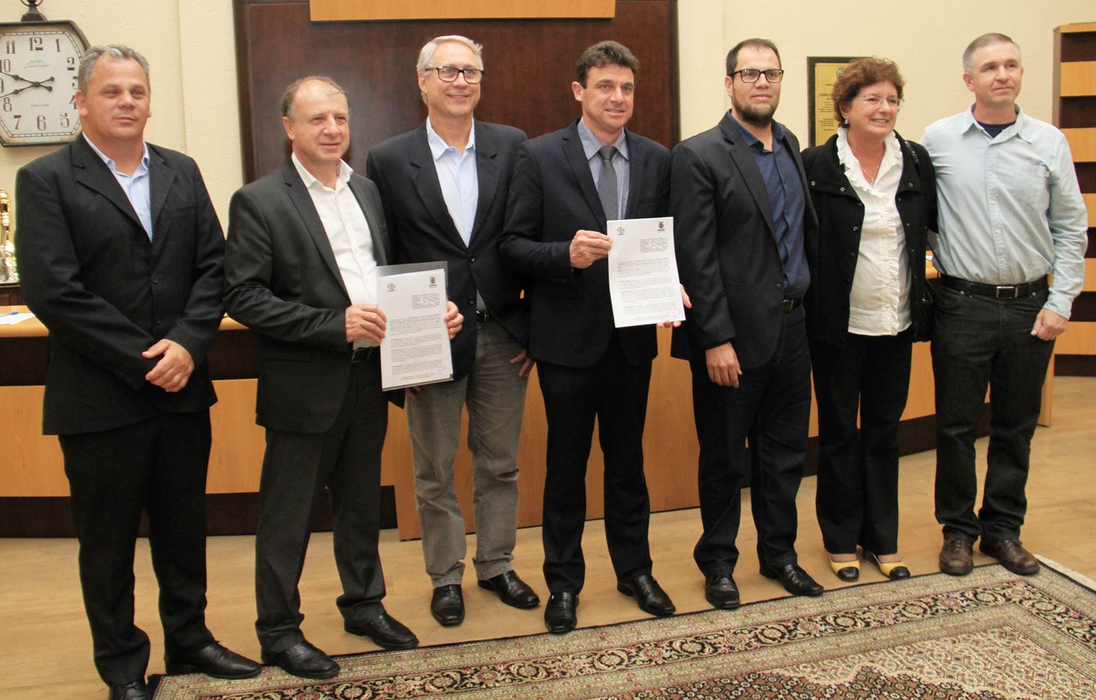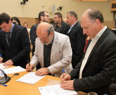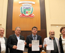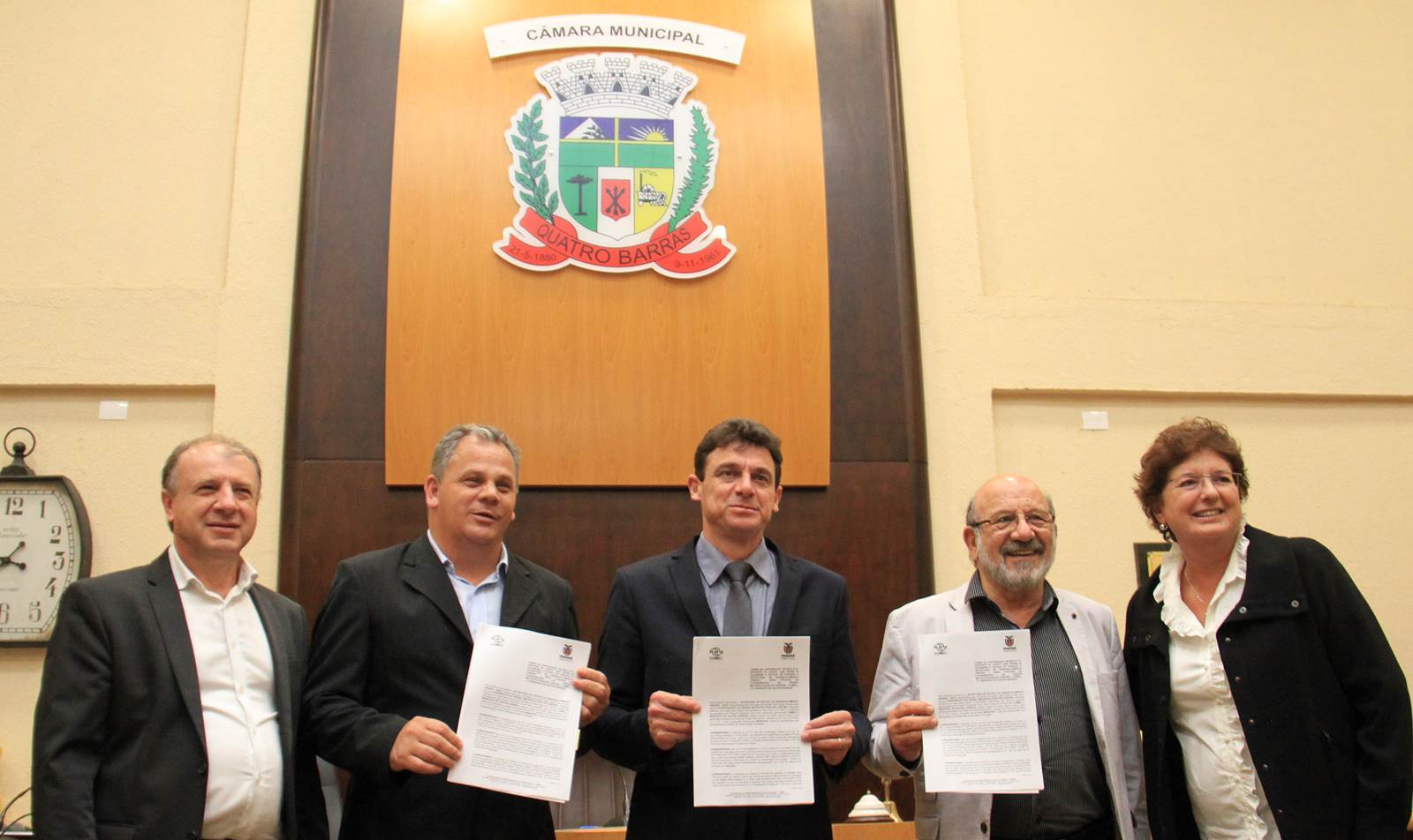 Os 56 anos de Emancipação Política do município de Quatro Barras, na Região Metropolitana de Curitiba, são comemorados com festas até domingo, 12. A primeira delas aconteceu na noite desta quinta-feira, 09, com uma Sessão Solene na Câmara Municipal local, onde o secretário do Desenvolvimento Urbano (SEDU), João Carlos Ortega, representou o governador Beto Richa. Ortega assinou e entregou ao prefeito Angelo Andreatta um Termo de Cooperação Técnica e Financeira entre o município e o Governo do Estado, por meio da Coordenação da Região Metropolitana (COMEC, ligada à SEDU), para a integração da Rede de Transportes com o Terminal de Santa Cândida, em Curitiba, e a implantação de mais 20 pontos de ônibus em Quatro Barras. “Nós pensamos os municípios da Região Metropolitana integrados com Curitiba. Eles são um único ente, em benefício de todos os moradores. E com este ato realizamos o sonho de muitas décadas desta população”, disse Ortega. Serão beneficiadas mais de 2 mil pessoas a cada dia.