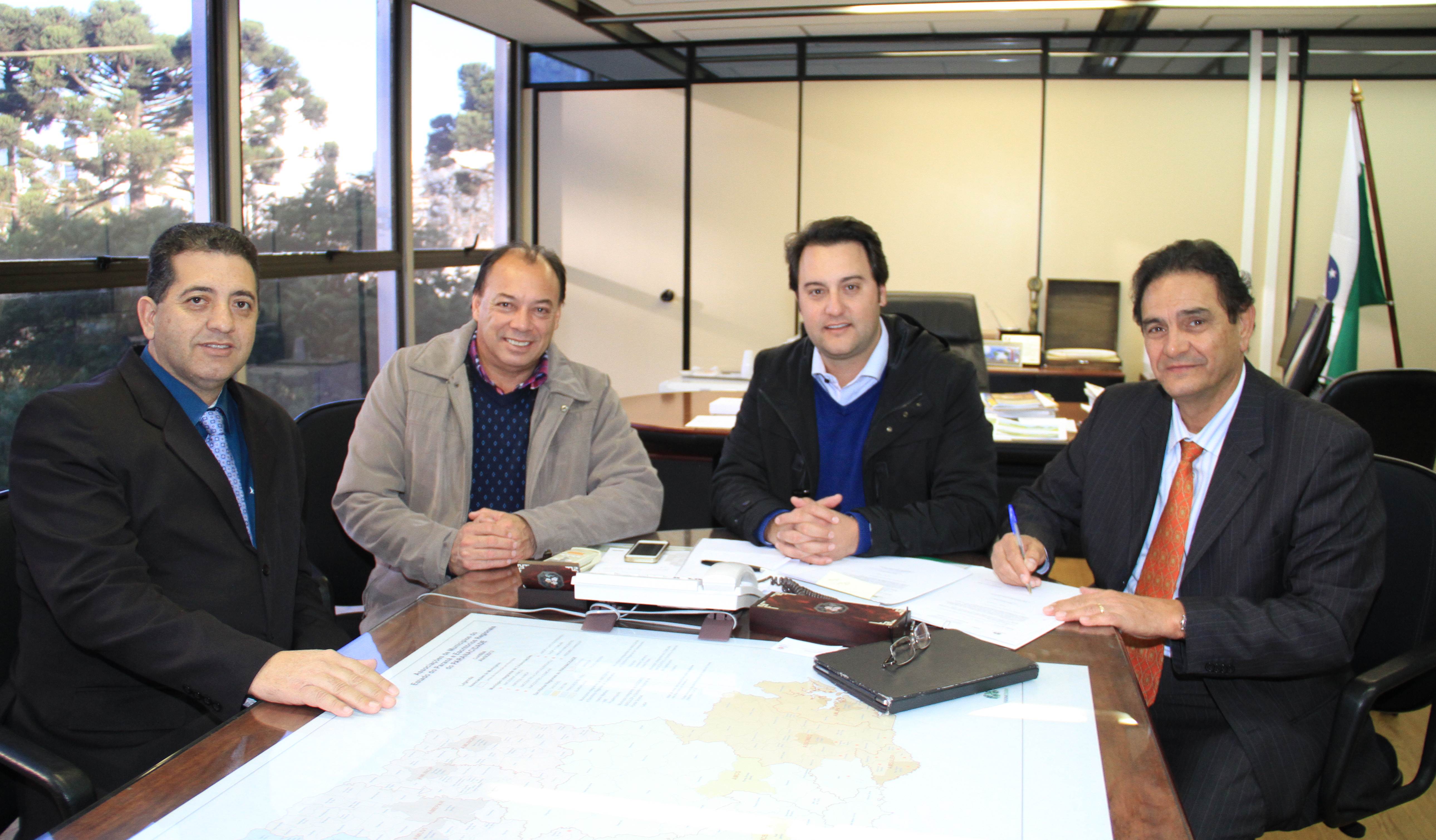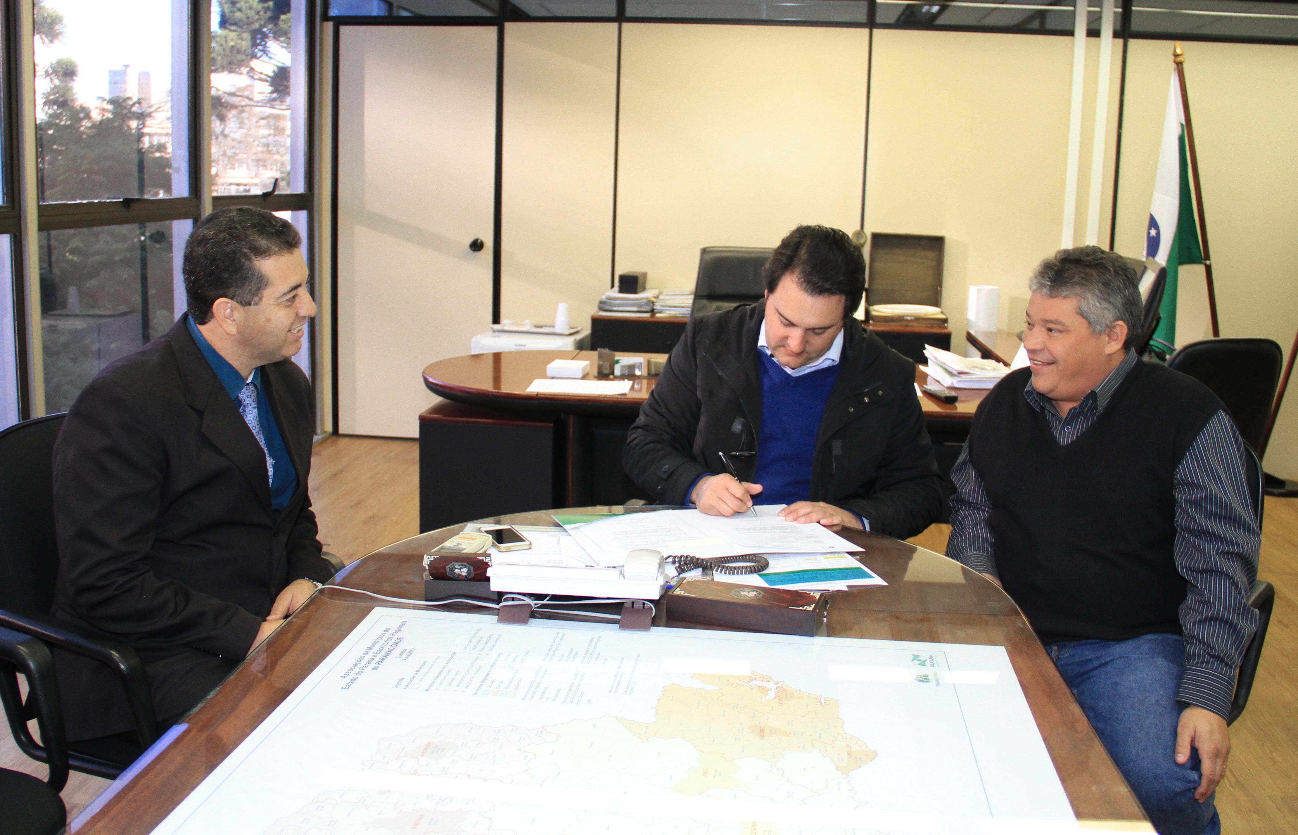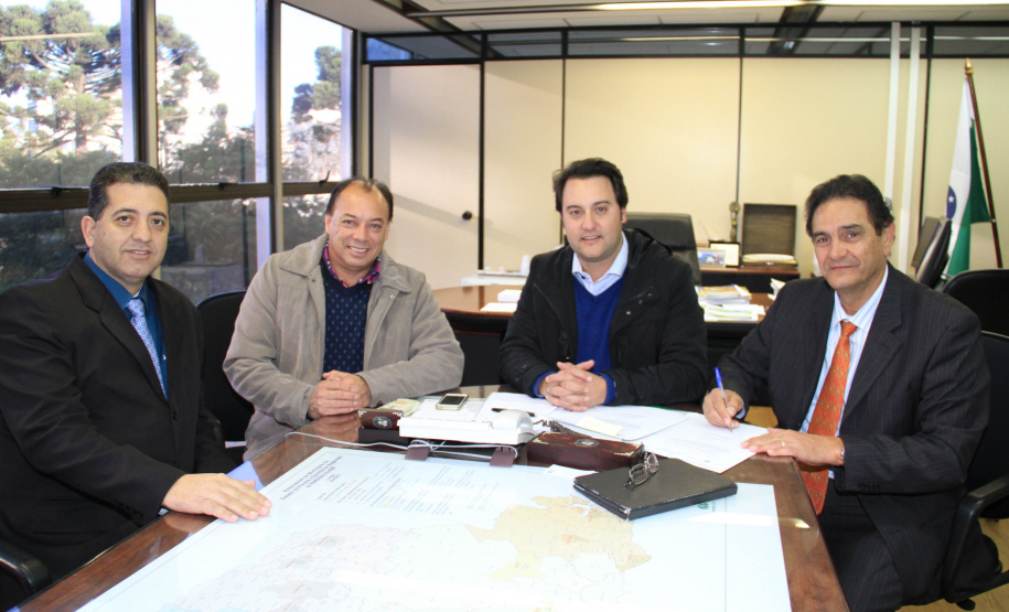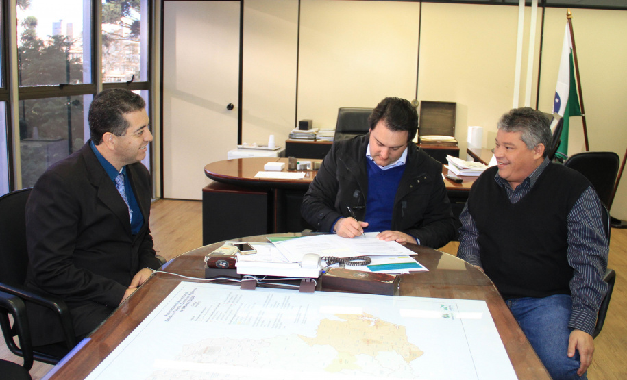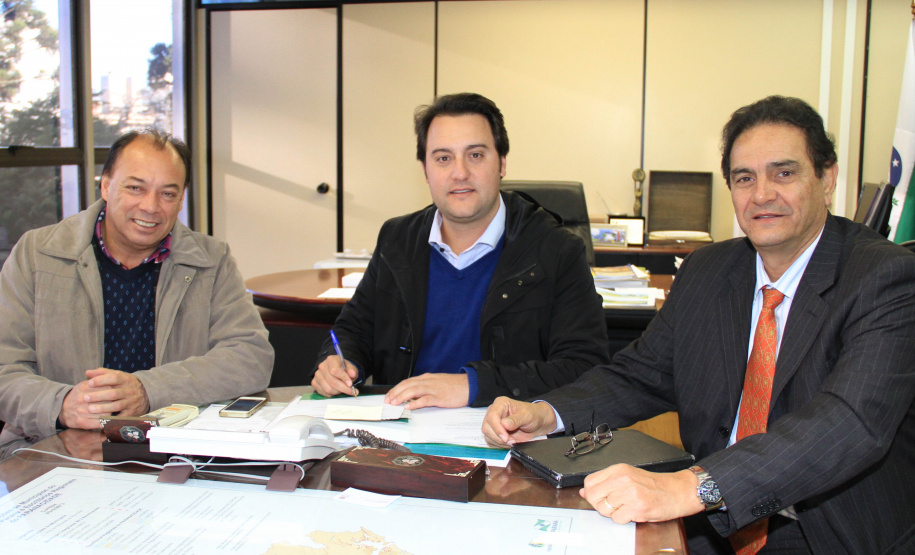 O prefeito de Jandaia do Sul, Benedito Pupio, acompanhado do deputado estadual Guto Silva, esteve com o secretário ratinho Junior e com o diretor geral da SEDU, João Carlos Ortega, e com o assessor especial, Lúcio Tasso, para assinar contratos e, depois, receber editais para licitar um total de R$ 202, 14 mil para dois investimentos, com contrapartida municipal de R$ 10,1 mil. Os recursos serão distribuídos em dois editais. Um deles, no valor de R$ 144.370,16 que serão investidos na execução de 5.400 m2 de recape na pista paralela à BR-376 e à Avenida Dr. Tancredo Neves. O outro, no valor de R$ 57.776,08 para a reforma do Salão Municipal, com área de 484,80 m2, na rua Marumbi.