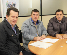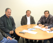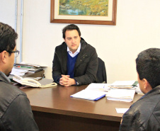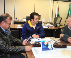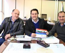 RECONHECIMENTO - O secretário ainda recebeu a visita de cortesia de duas lideranças do município de São Tomé, os empresários Eliel Hernandes Roque e Luiz Carlos Ferretti. Ambos passaram pela SEDU para abraçar Ratinho Junior, João Carlos Ortega e Lúcio Tasso. “São pessoas que atuam pela política do bem, em favor da população. Somos amigos e admiramos a conduta dos três”, dizze Hernandes Roque.