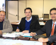 São 26 anos de espera que chegam ao fim para a população de Paiçandu. O secretário do Desenvolvimento Urbano (SEDU), Ratinho Junior, nesta terça-feira, 14, recebeu o prefeito Tarcísio Marques dos Reis que assinou o contrato para receber o edital à licitação de mais de R$ 4,8 milhões para a realização de mais de 35,5 mil m2 de vias asfaltadas naquela cidade. “Nós temos outras conquistas em nossa gestão, mas esta é a obra do coração da cidade, a mais importante de minha gestão, porque vai realizar o sonho de 26 anos de espera de mais de 4 mil famílias. E quando os mais de 35 mil metros quadrados de asfalto cobrirem as ruas de Paiçandu, vamos chegar perto da demanda zero”, comemora o prefeito.