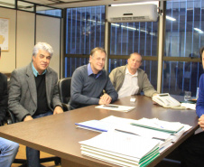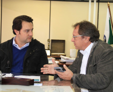 Ortega também recebeu o prefeito de Nova Esperança, Gerson Zanusso para falar sobre recursos ao município. Ele poderá, em breve, homologar recursos no valor de mais de R$ 1,8 milhão, pelo SFM, para a pavimentação asfáltica de uma área de 2.023,05 m2, mais uma área de recape de 45.669,22 m2, mais 529,74 m2 de calçadas para vias urbana daquele município.