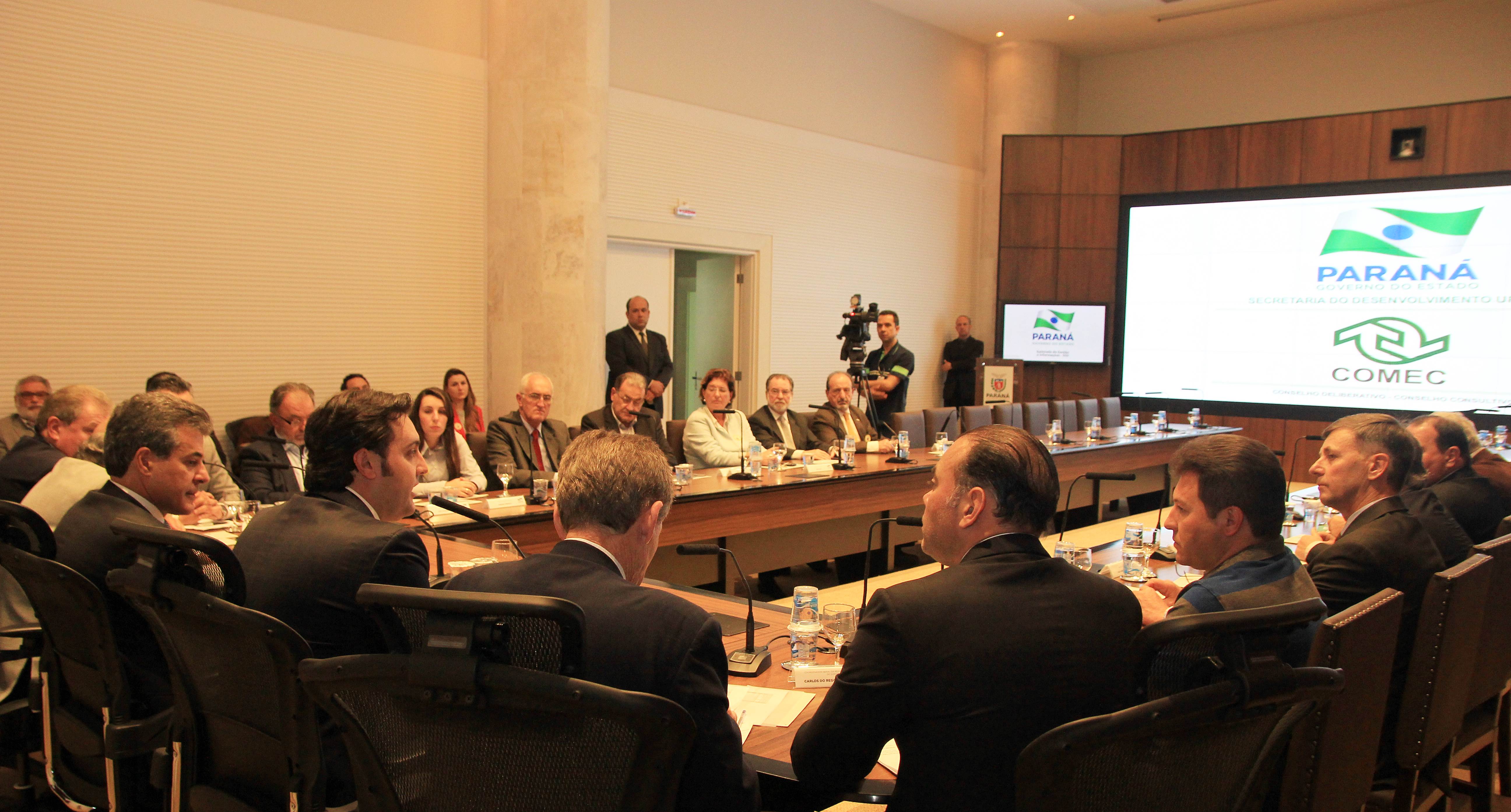 Governador Beto Richa deu posse nesta terça-feira, 06, no Palácio Iguaçu, aos novos membros dos Conselhos Consultivo e Deliberativo da Coordenação da Região Metropolitana de Curitiba (COMEC), vinculada à Secretaria de Desenvolvimento Urbano (SEDU). “Estes Conselhos existem há 40 anos, desde a criação da COMEC. E, neste ato, nós damos maior força de coordenação à instituição, com a participação efetiva dos prefeitos da Região Metropolitana de Curitiba (RMC). Pois, são os prefeitos que vivem as prioridades do dia a dia da população. Juntos, vamos fazer do Paraná e da Região Metropolitana de Curitiba referência para o Brasil, na questão do Estatuto da Metrópole”, disse o secretário da SE#DU, Ratinho Junior.
