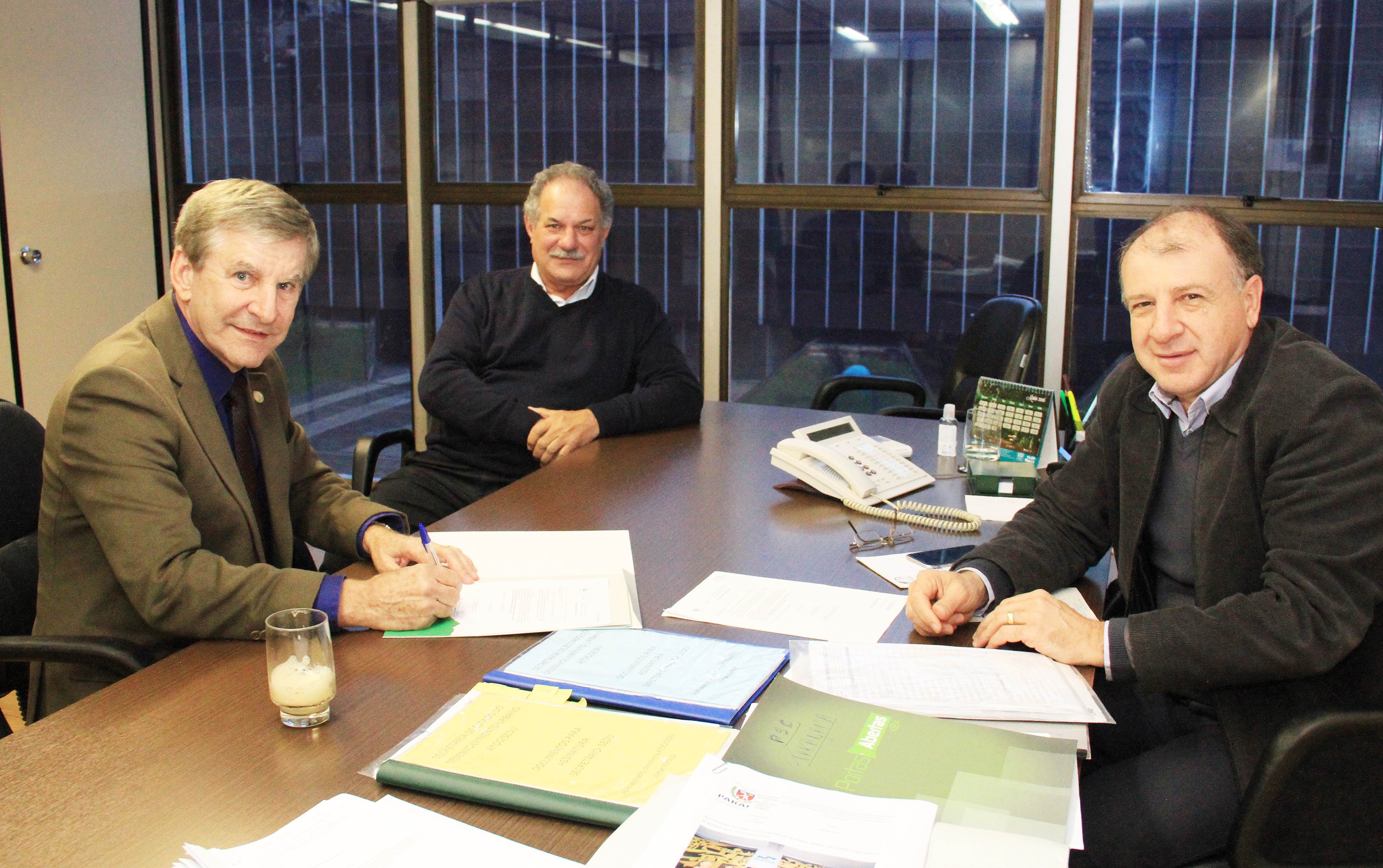 Também estiveram presentes na SEDU os prefeitos de Prudentópolis, Adelmo Luiz Klosowski; de Figueira, Valdir Garcia; e de Prado Ferreira, Sílvio Antônio Damaceno. O primeiro, para assinar um edital de licitação, no valor de R$ 100 mil para a construção de uma quadra com asfalto A quadra fica na Rua Capitão João Alves David, no centro do município. De acordo com o prefeito, “esta é uma obra que faz parte da preparação da cidade para aumentar o turismo em Prudentópolis”. Os recursos são a fundo perdido, por Transferência Voluntária da SEDU.