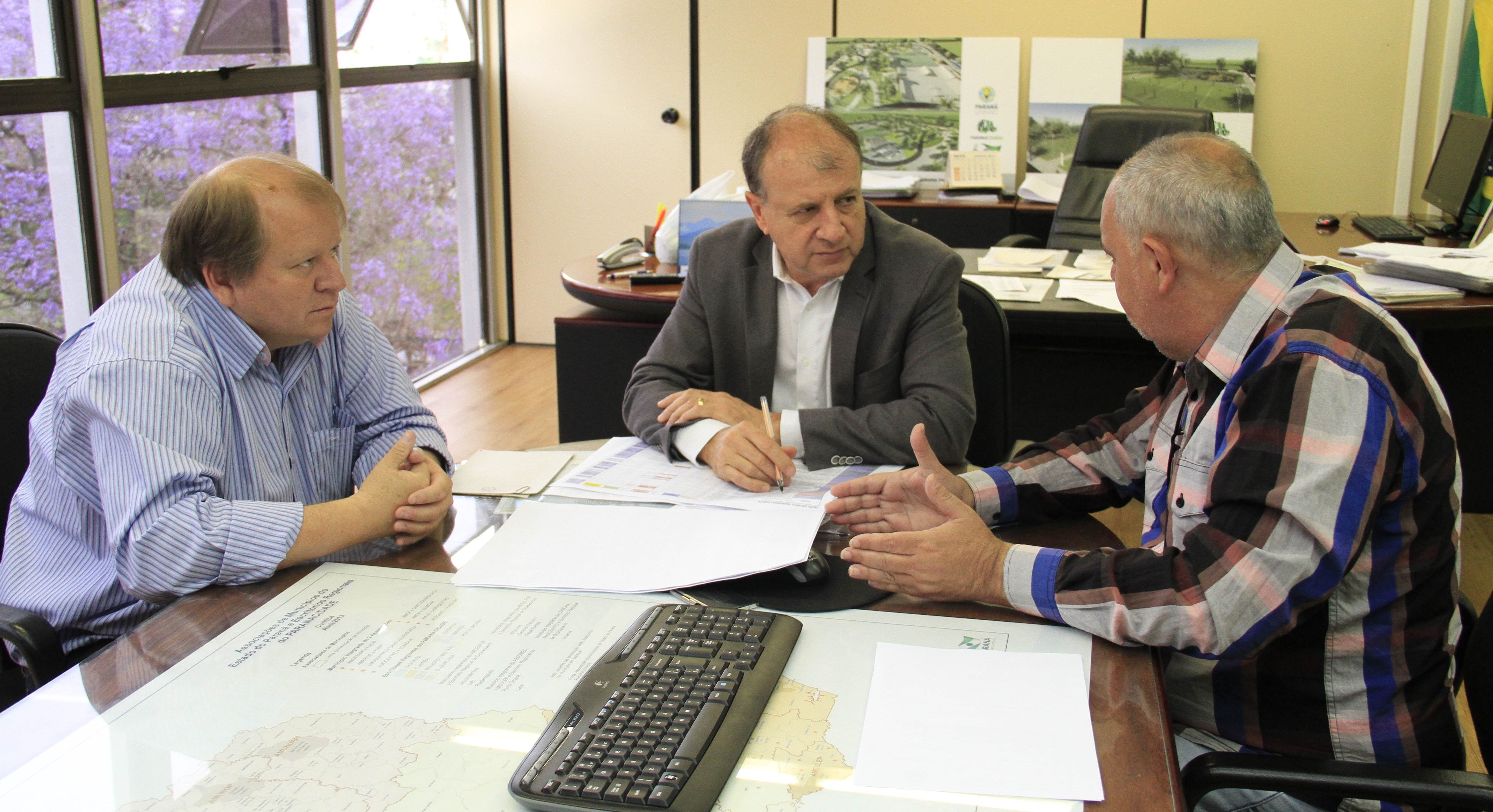 Prefeitos do Paraná aceleram documentação e ações para que os projetos necessários à população, de seus respectivos municípios, sejam realizados em tempo, sem problemas com a legislação eleitoral. Na última semana, mais uma leva de prefeitos esteve na Secretaria do Desenvolvimento Urbano (SEDU), em audiências com o secretário da Pasta, João Carlos Ortega, e com o diretor-geral, Lúcio Tasso. “A maioria deles levou editais para licitar os projetos solicitados, anteriormente, ao governador Beto Richa”, disse Ortega.