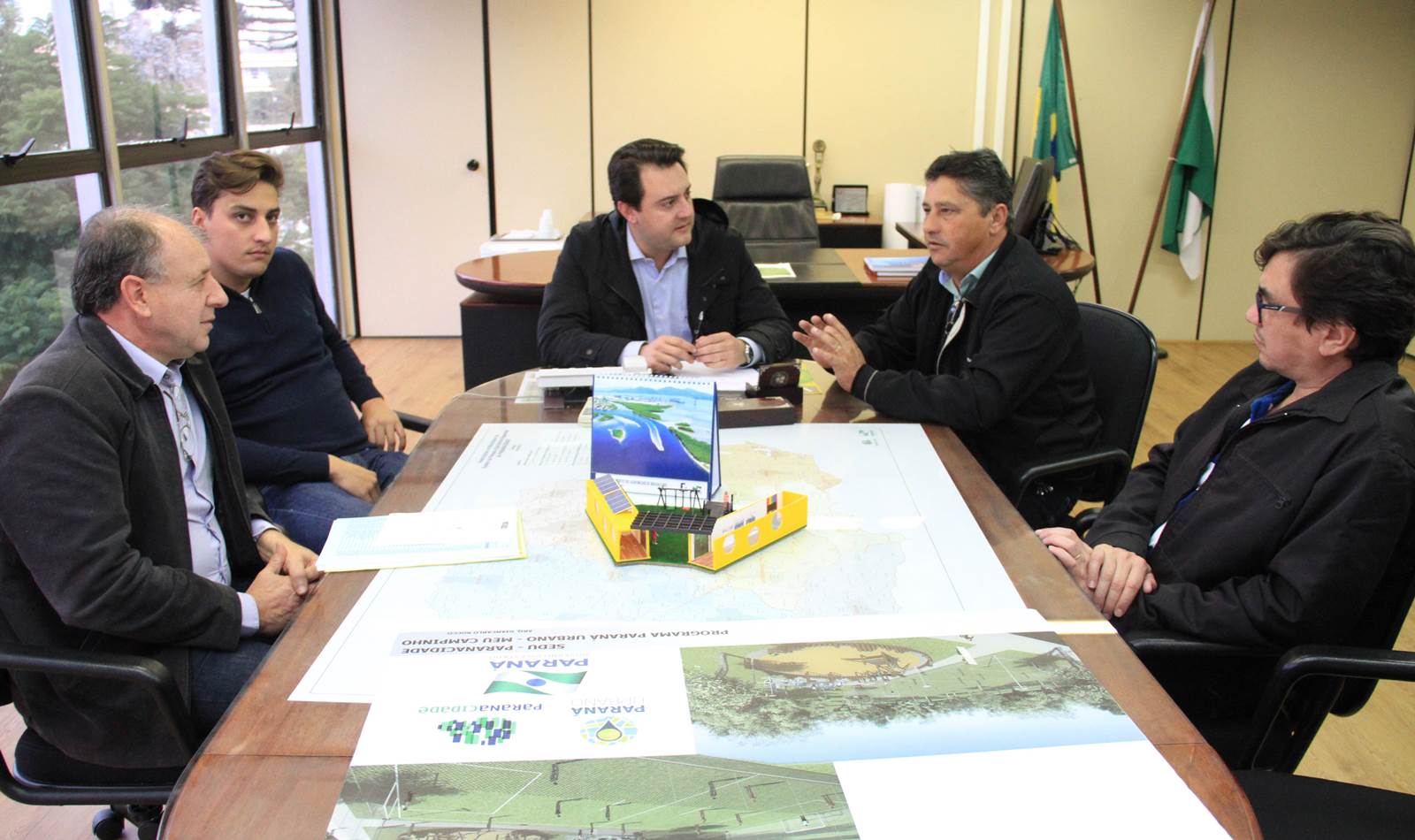 O secretário do Desenvolvimento Urbano (SEDU), Ratinho Junior, recebeu em seu gabinete os prefeitos de Fênix, Altair Serrano; de Pranchita, Eloir Lange; e de Ponta do Paraná, Marcos Fioravante, o Casquinha. Todos conversaram sobre financiamentos aos seus respectivos municípios. O de Pontal do Paraná já tinha debaixo do braço os projetos que ainda faltam para alavancar ainda mais aquele município do litoral do Paraná. No mesmo momento do pedido, Ratinho Junior deu encaminhamento a cada um deles. Ele também adiantou alguns dos projetos de excelência que ele viu em Portugal, em especial sobre o destino de resíduos, e a maneira como eles buscam soluções, como a reciclagem reversa. “A cada nova geladeira nova, sai uma para reciclagem”, explicou entre outras soluções.]