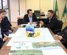 Todos os prefeitos ouviram com atenção as novidades, das quais algumas serão aplicadas no Paraná, em breve. Junto com Ratinho Junior estavam o diretor-geral, João Carlos Ortega, e o diretor de operações do Serviço Social Autônomo (Paranacidade), Álvaro Cabrini Júnior. E com o prefeito de Pranchita estavam o vice, Naury Pirobano, e o deputado estadual Wilmar Reichemback. Lange falou sobre obras de infraestrutura em andamento no município e que precisam de um ajuste, o que será feito, de acordo com Ratinho Junior e Ortega. O prefeito ainda falou sobre a necessidade de uma ajuda para o Hospital local. Ratinho adiantou que faz parte do convênio de Saúde e que os recursos deverão ser liberados pela Secretaria da Fazenda.