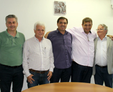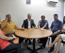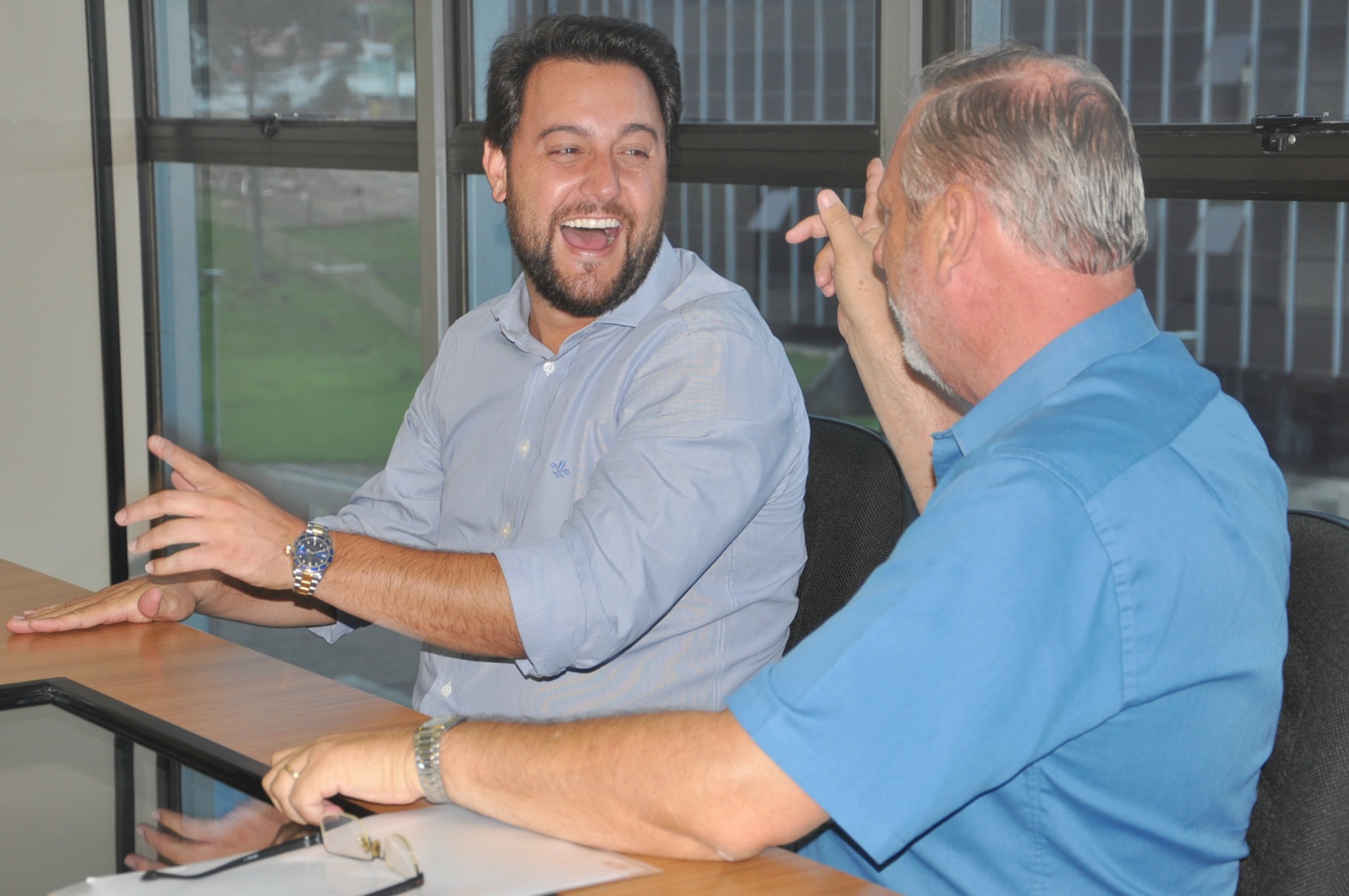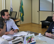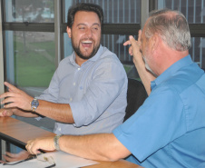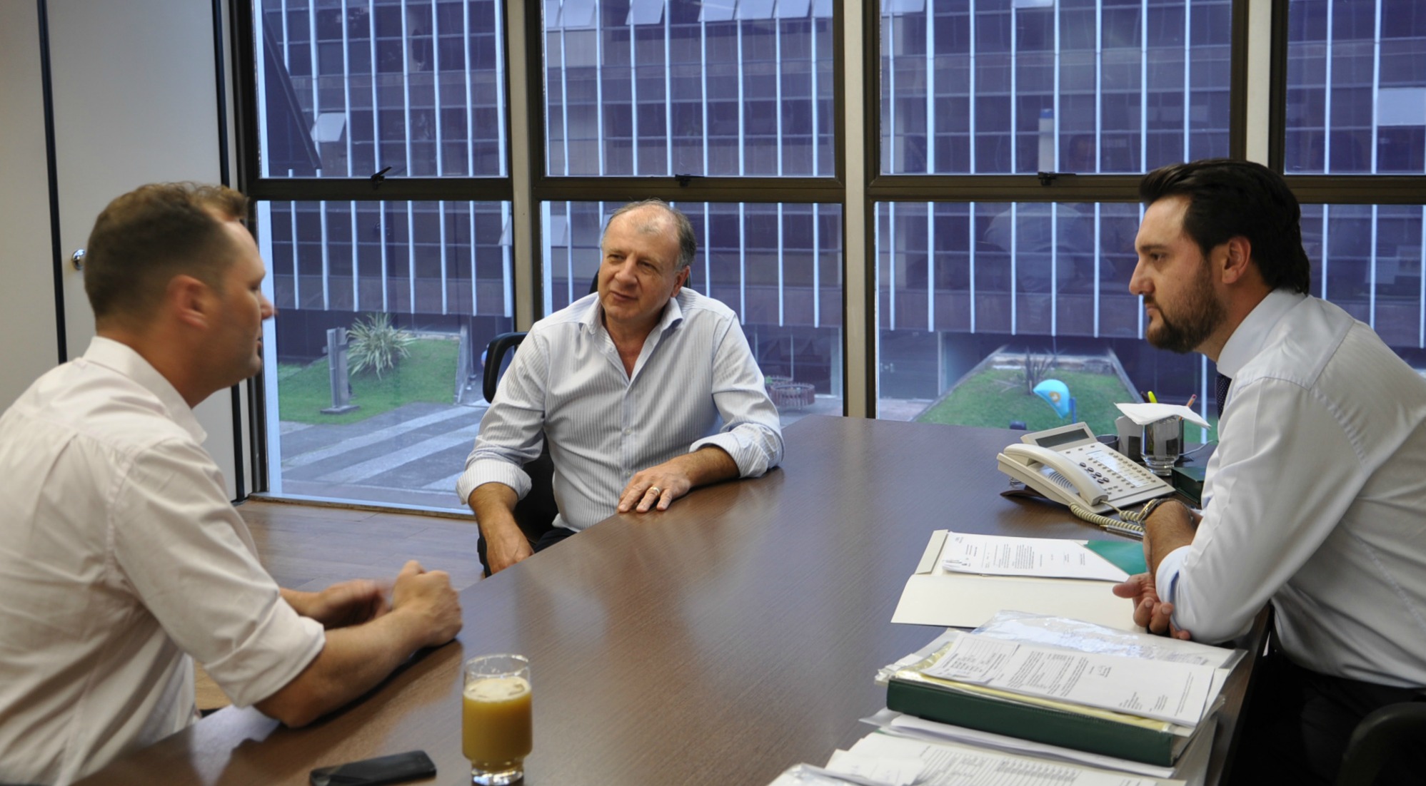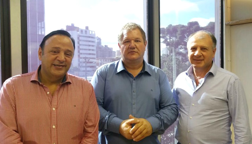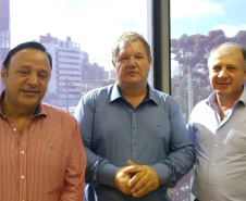 TURISMO GASTRONÔMICO – Ortega ainda recebeu o prefeito de Campo Magro, Cláudio Casagrande, acompanhado do secretário municipal de Planejamento, Madson de Oliveira, e do deputado estadual Hussein Bakri. Presidente da Associação Paranaense de Avicultura (APAVI), Casagrande tem visão empresarial para administrar o município. “É a nossa primeira gestão pública. Minha equipe e eu vamos transformar Campo Magro em uma cidade de verdade, com um Centro Cívico para atender as necessidades da população e, ainda, gerar emprego e renda criando um polo turístico gastronômico”, revelou.