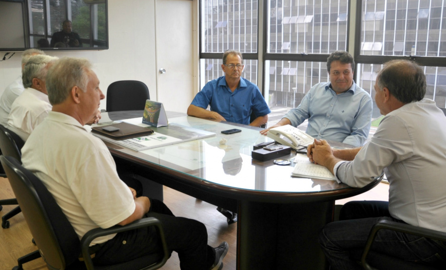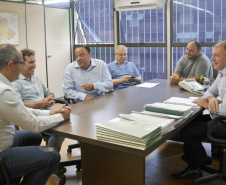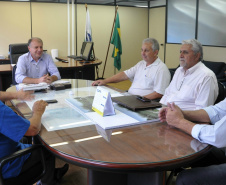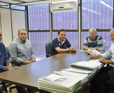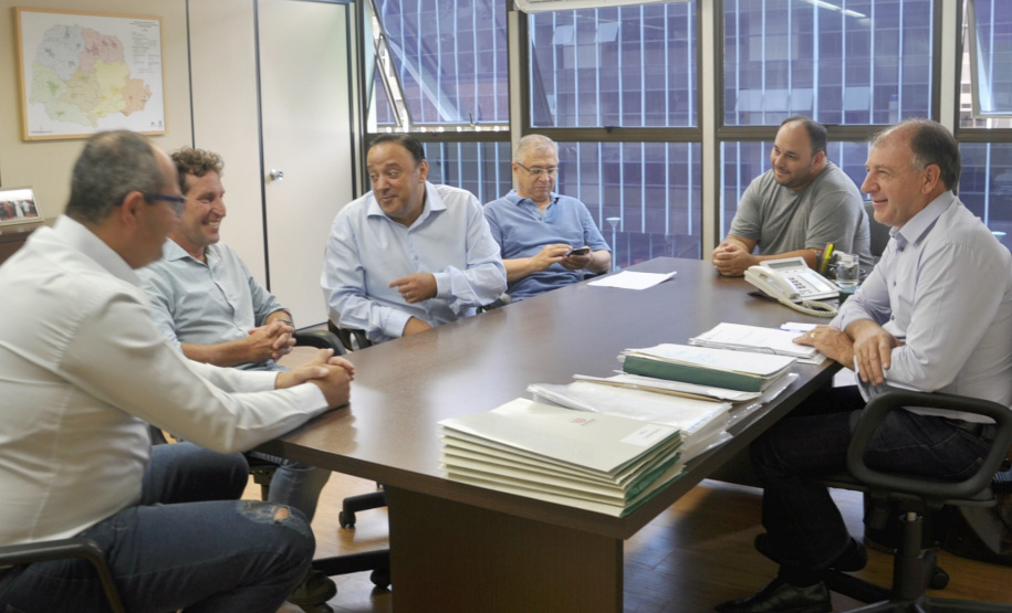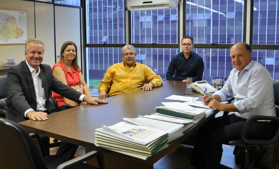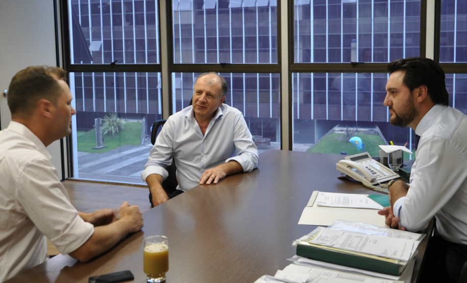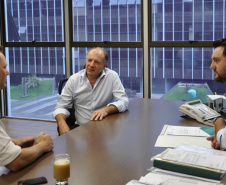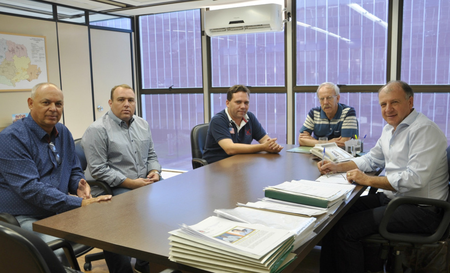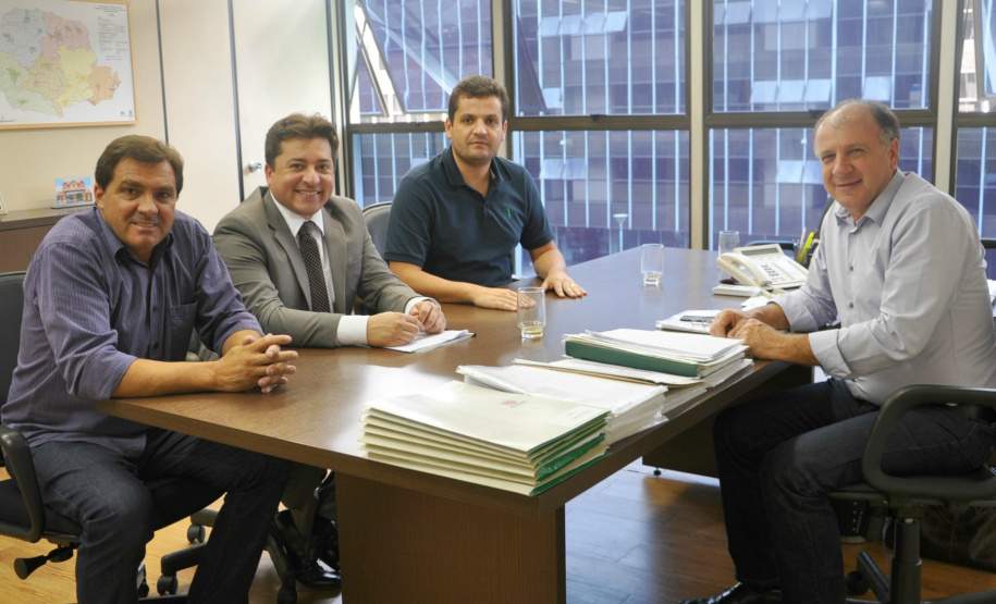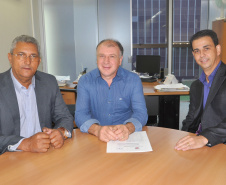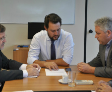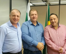 Os prefeitos de Altônia, Claudemir Gervasone; de Alto Paraíso, Dercio Jardim Junior; e de Ivaté, Univaldo Campaner; acompanhados do deputado estadual Márcio Nunes, foram recebidos pelo secretário Ratinho Junior e por João Carlos Ortega.