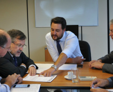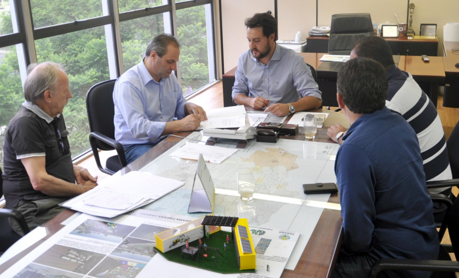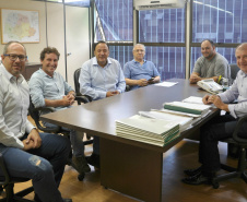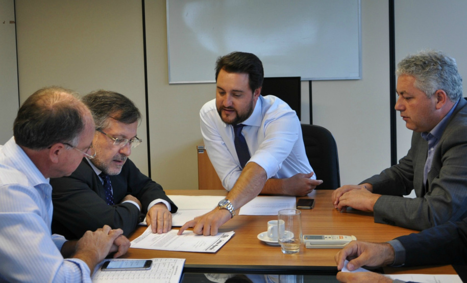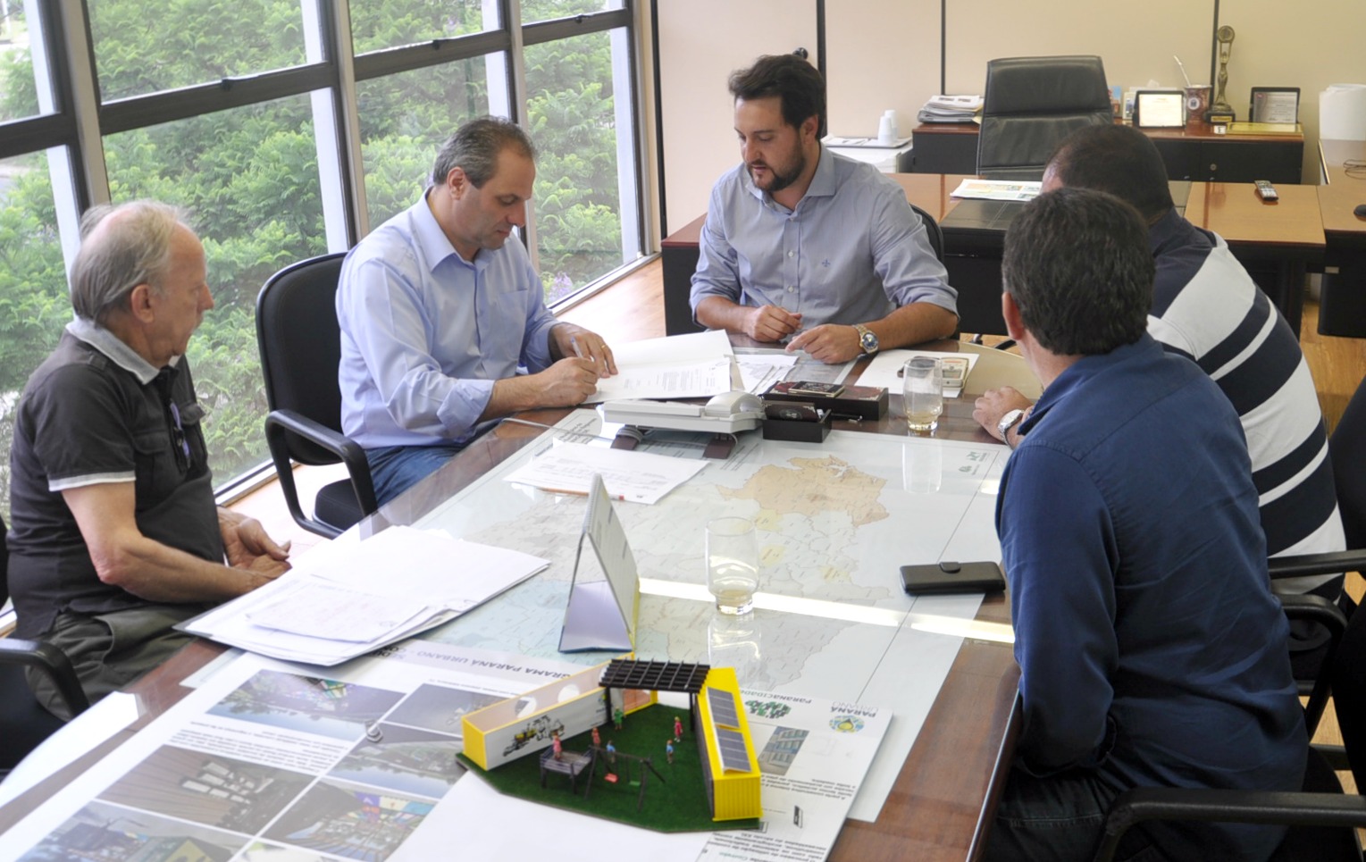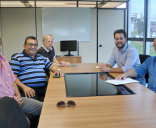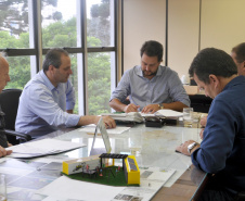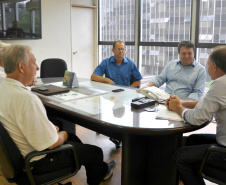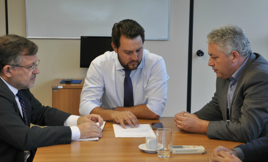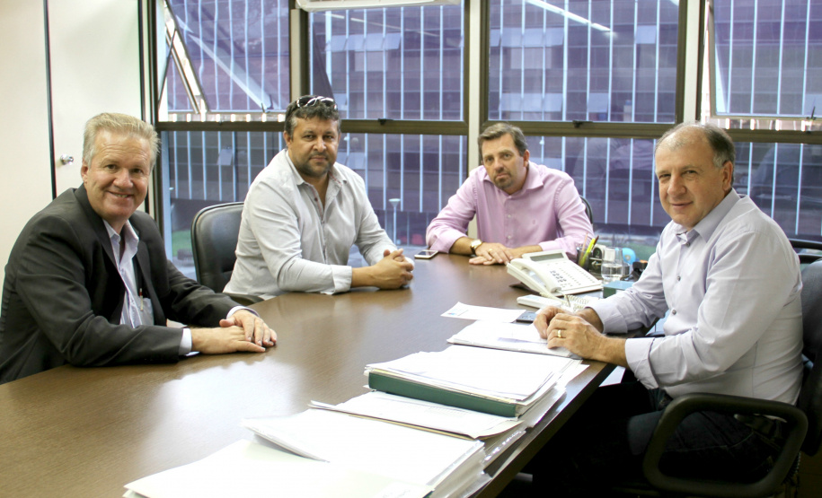 Os prefeitos de Altônia, Claudemir Gervasone; de Alto Paraíso, Dercio Jardim Junior; e de Ivaté, Univaldo Campaner; acompanhados do deputado estadual Márcio Nunes, foram recebidos pelo secretário Ratinho Junior e por João Carlos Ortega.