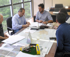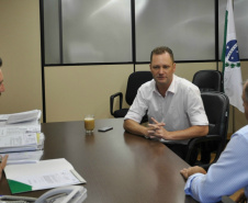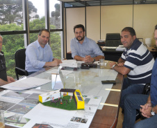 O prefeito Marquinhos esteve na SEDU, acompanhado do deputado Hussein Bakri e assessores, para conversarem com o diretor-geral, João Carlos Ortega. O prefeito disse que, por meio da SEDU, muitas obras de pavimentação já foram concluídas naquele município da Região Metropolitana de Curitiba. “Mas, precisamos melhorar ainda mais. Estamos preparando um novo pacote com demandas de pavimentação em diversos bairros da cidade. O projeto terá de estar dentro da capacidade de endividamento do nosso município”, adiantou.