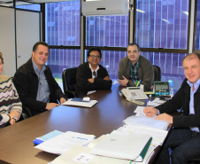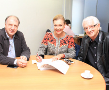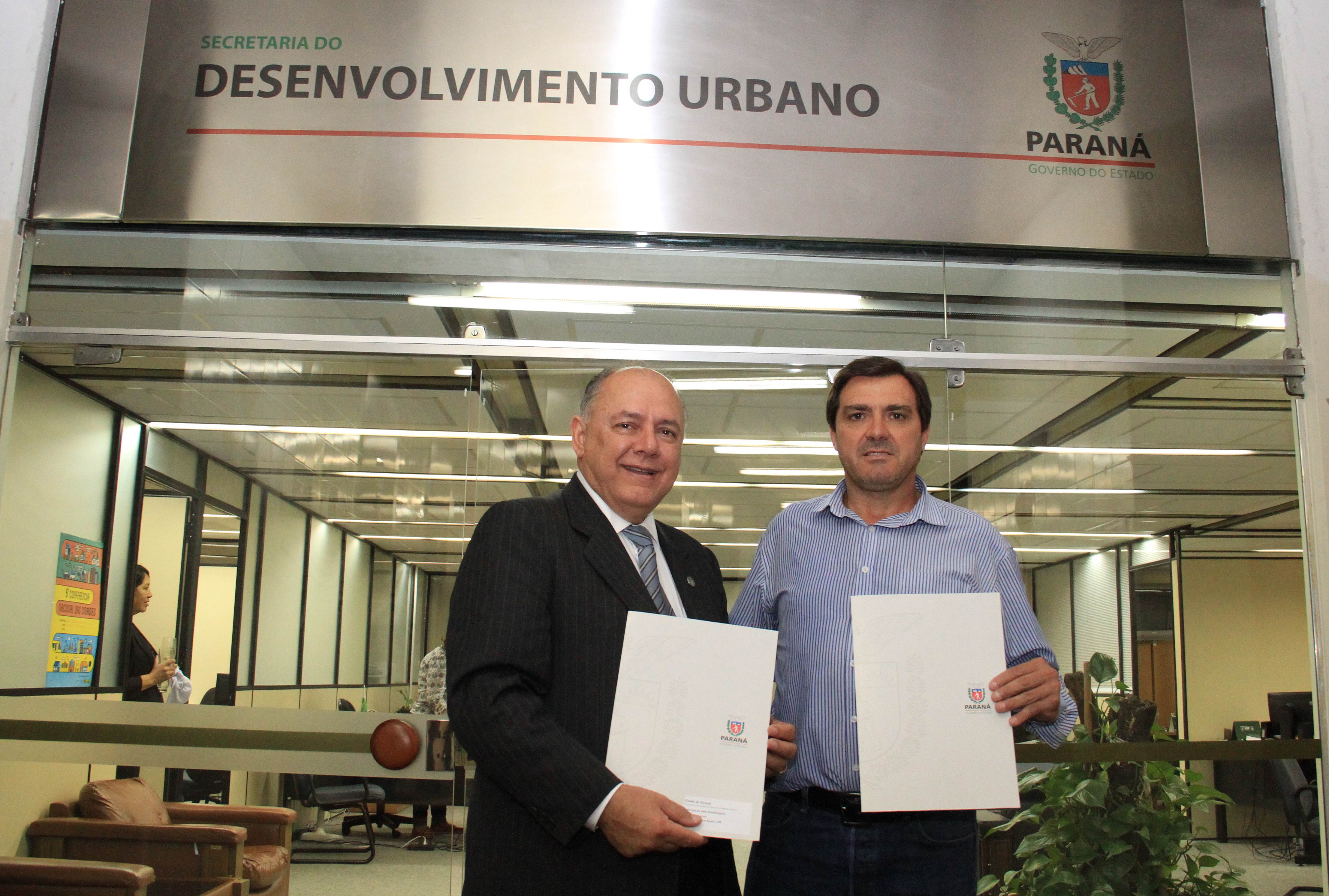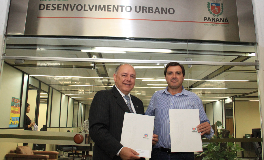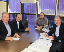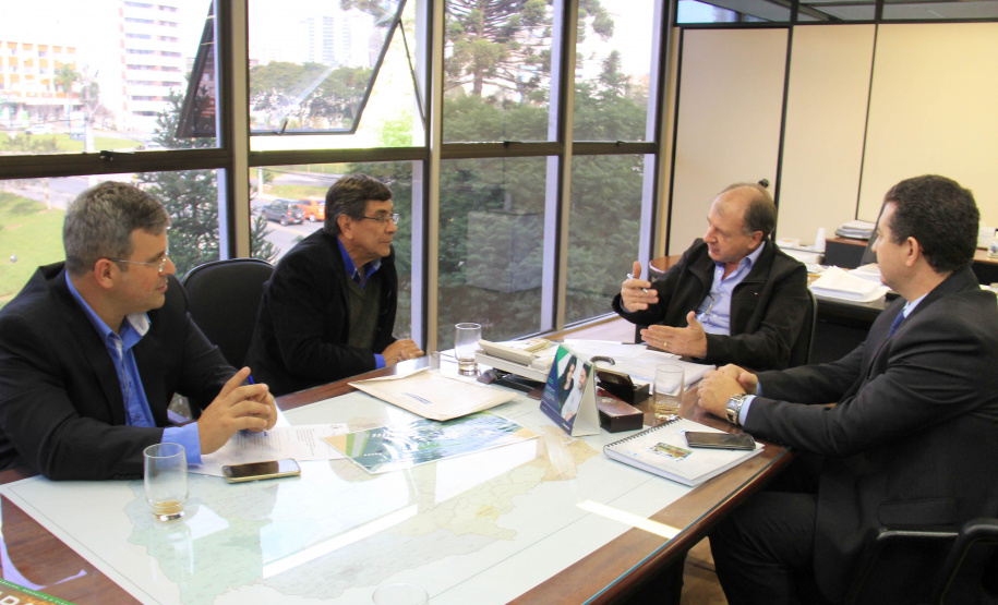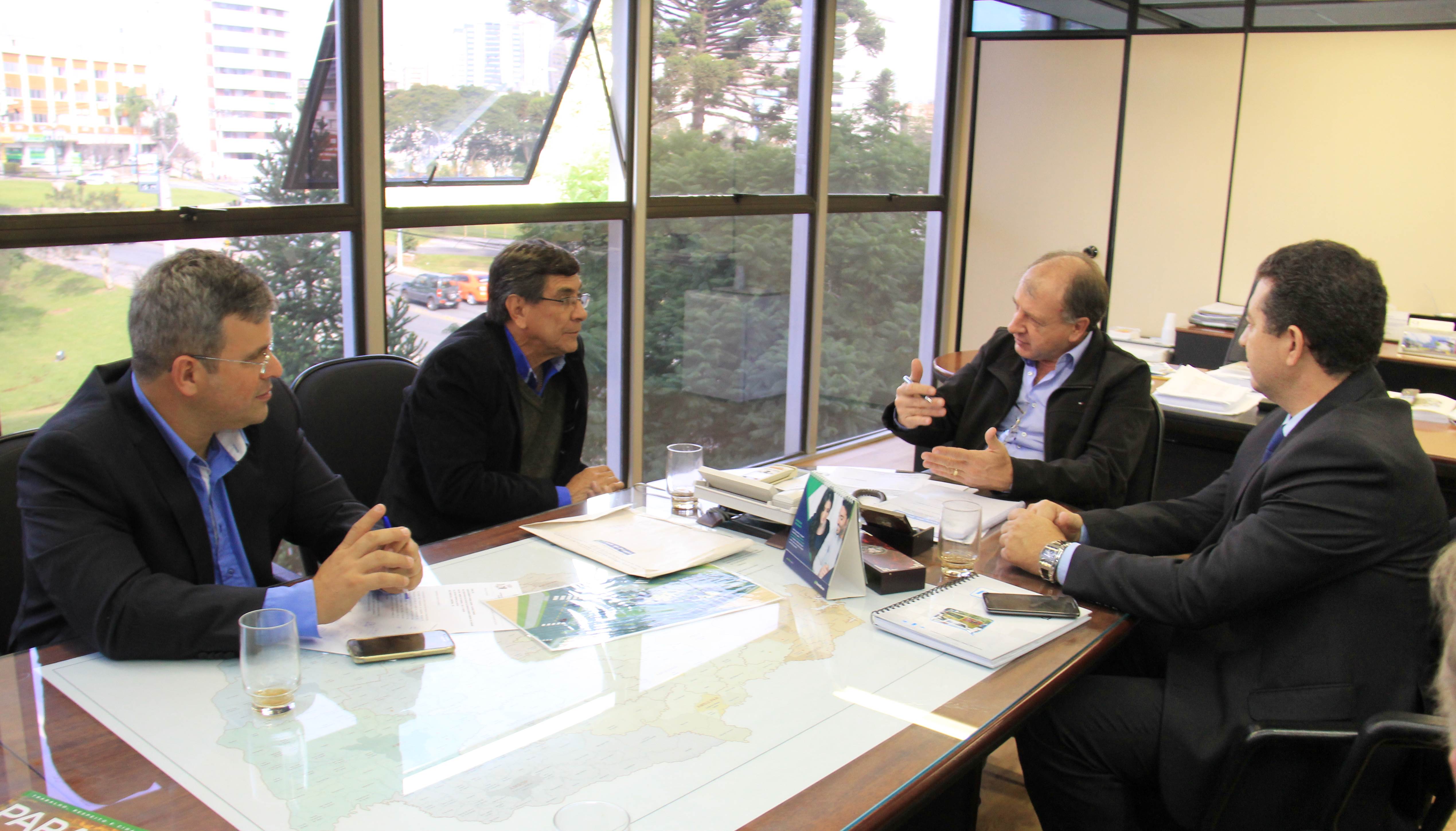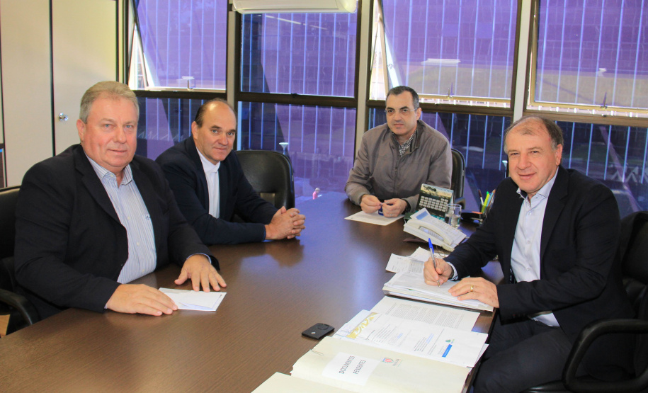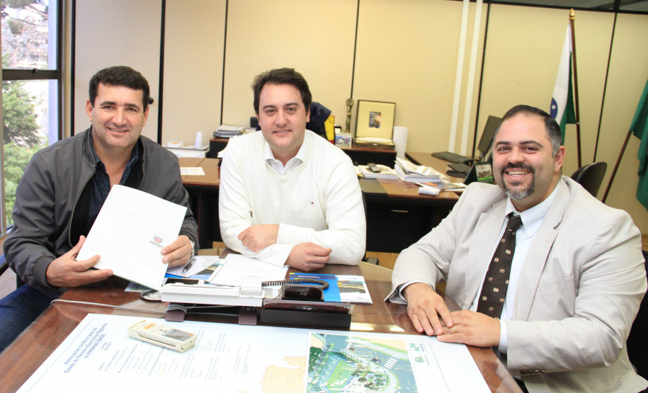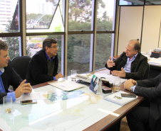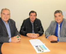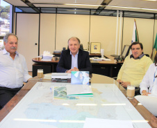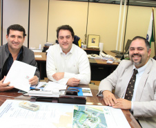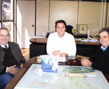 PROJETOS - O prefeito de Contenda, Carlos Eugênio Stabach, e o vereador Gilmar Carpejani também estiveram na SEDU. Eles foram recebidos pelo diretor geral, João Carlos Ortega, para quem pediram financiamento no valor de R$ 2 milhões para pavimentação asfáltica nas ruas do Centro da cidade, pelo Sistema de Financiamento dos Municípios (SFM).