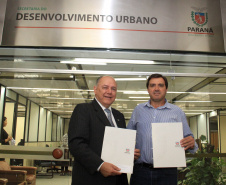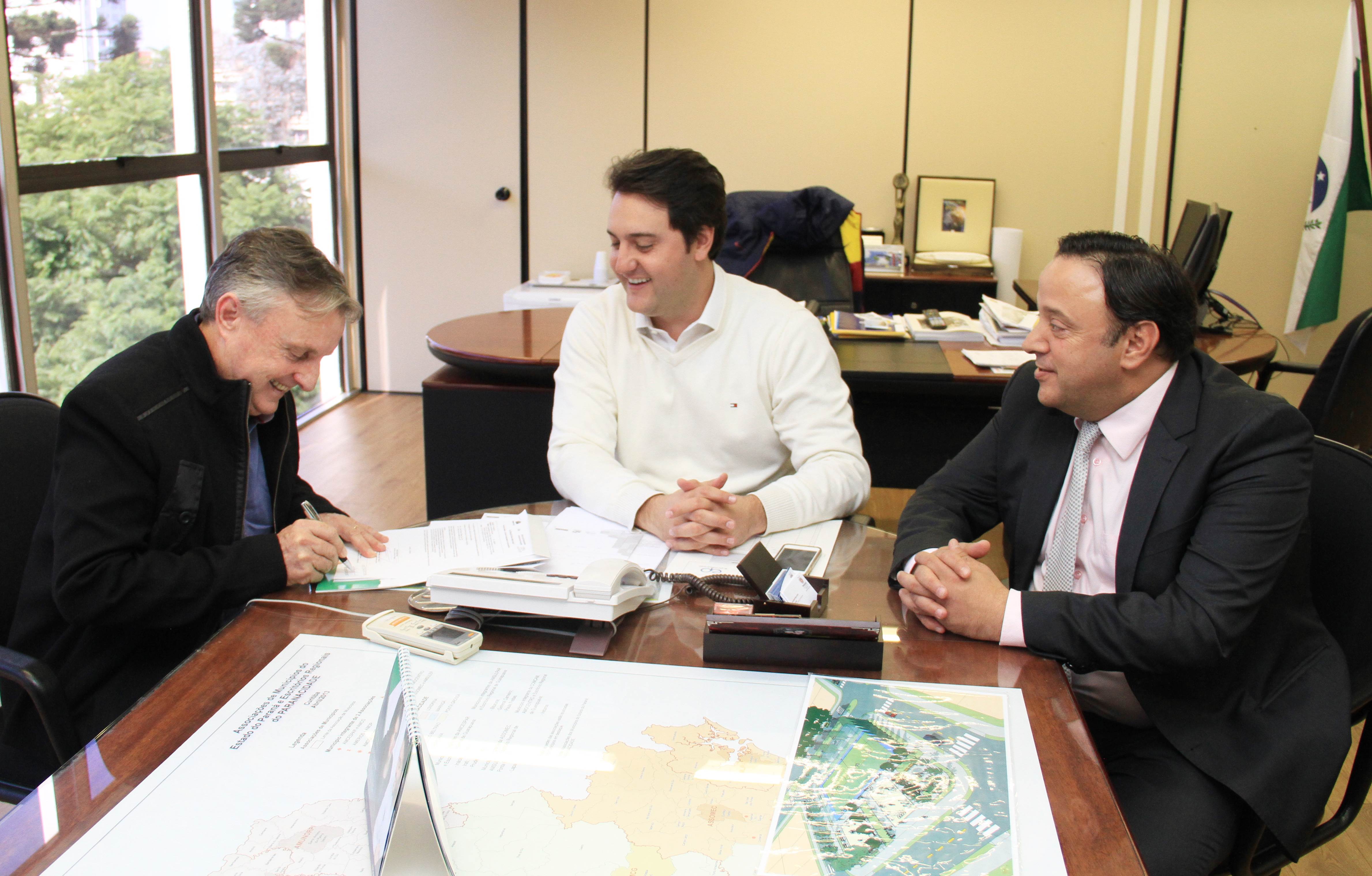 CORRENDO CONTRA O TEMPO - Já, Lúcio Tasso, assessor especial do gabinete de Ratinho Junior, recebeu o deputado estadual José Carlos Schiavinato para, juntos, tratarem de investimentos para três municípios da região Oeste do Estado. As autorizações para homologação das obras de urbanização das cidades de Boa Vista da Aparecida, Mercedes e São José das Palmeiras já foram assinadas pelo governador Beto Richa e pelo secretário Ratinho Junior.