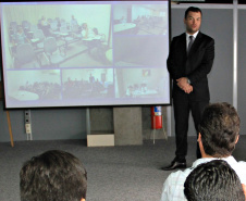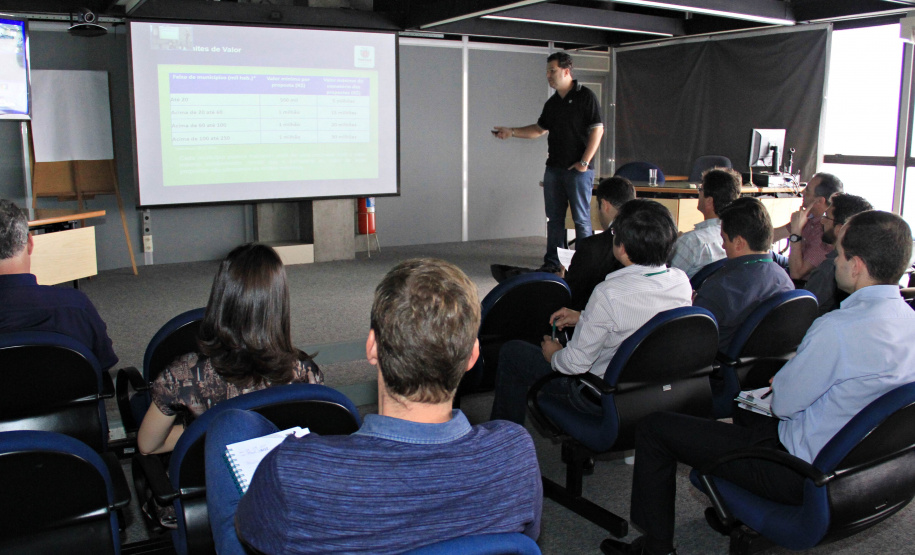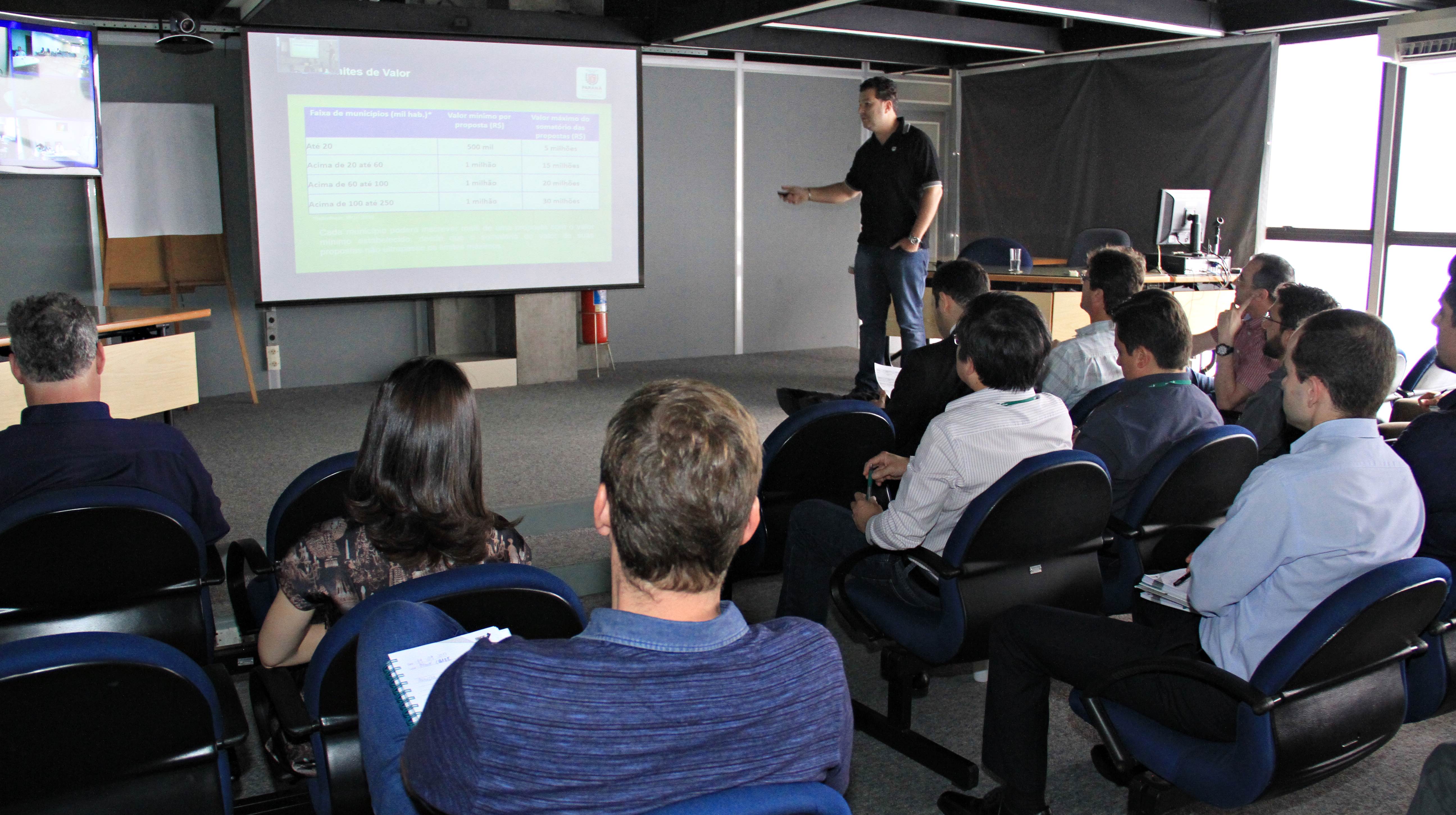 Um grupo de engenheiros e funcionários do Banco Regional do Desenvolvimento do Extremo Sul (BRDE) esteve nesta semana no auditório da Secretaria do Desenvolvimento Urbano (SEDU) para receberem, do coordenador de estudos e captação de recursos do Serviço Social Autônomo (Paranacidade), Alexandre Simas, informações detalhadas sobre o funcionamento e financiamento do Programa Avançar Cidades – Mobilidade Urbana, do Ministério das Cidade. “Por meio desta linha de crédito, os trabalhos já podem ser iniciados, uma vez que os interessados já podem se cadastrar”, disse Simas.