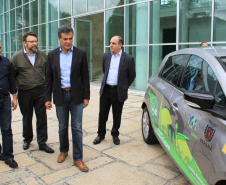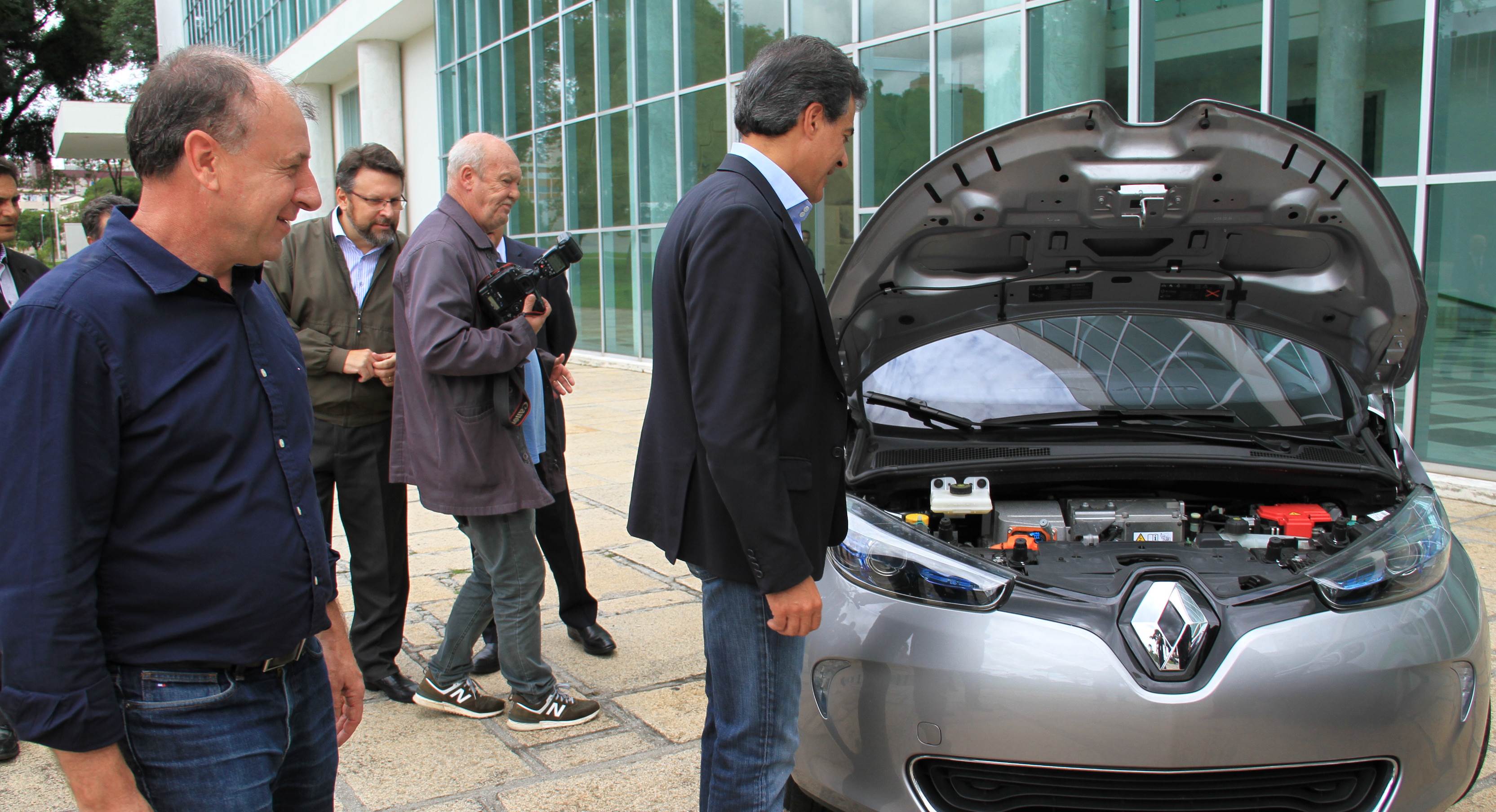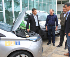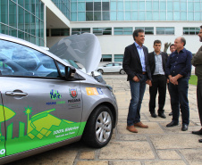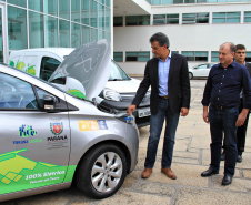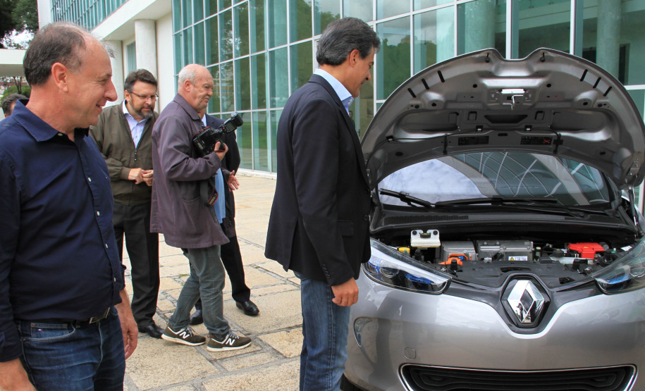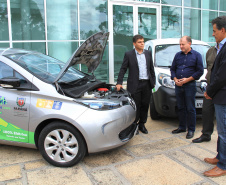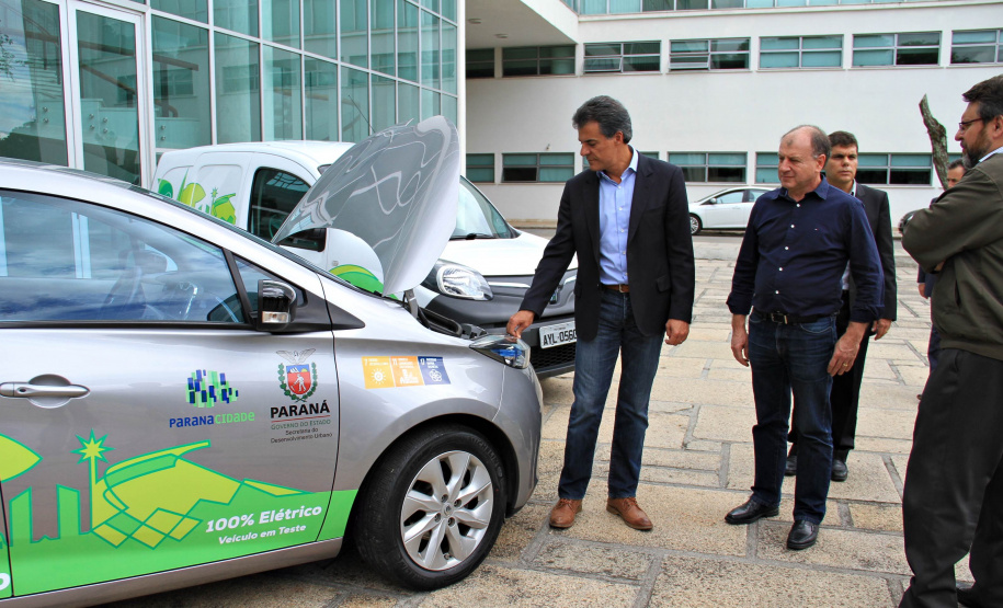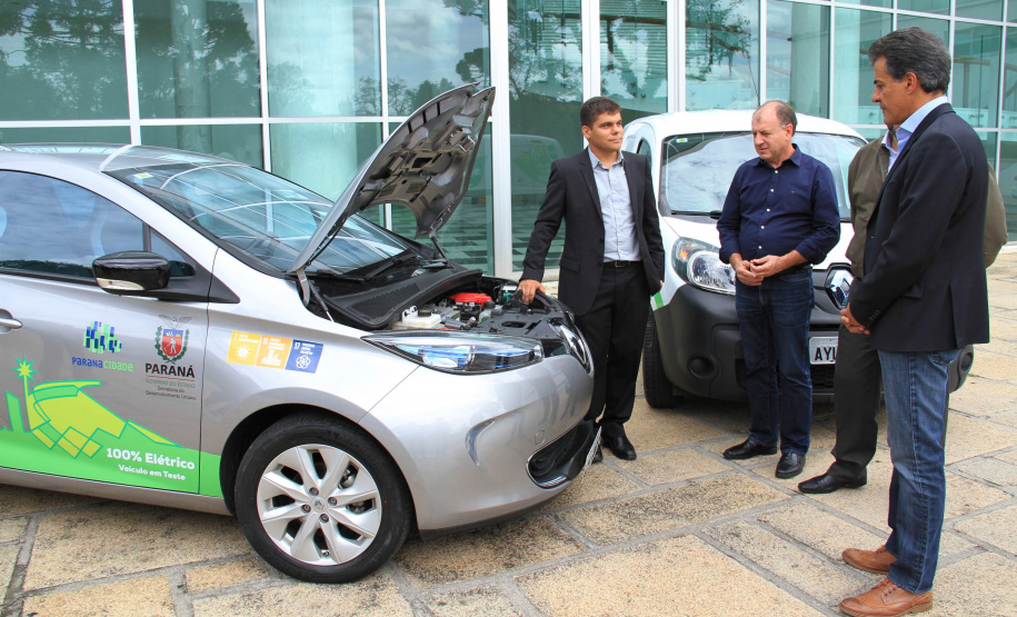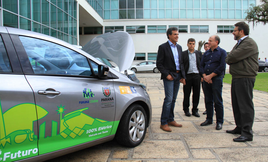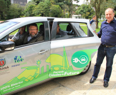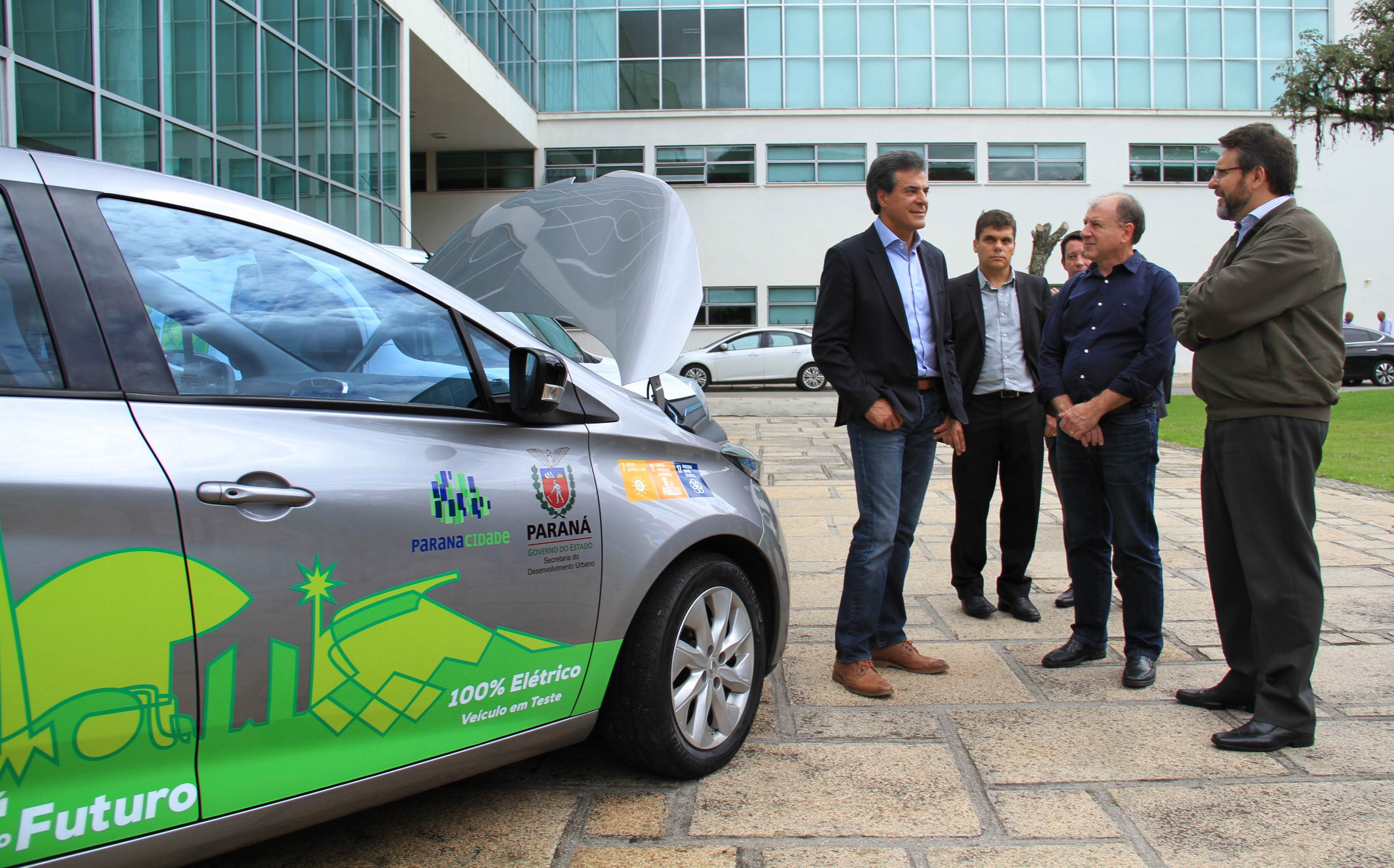 Em sintonia com a Agenda 2030 para o Desenvolvimento Sustentável e frente aos desafios da mobilidade urbana, o secretário de Estado da Secretaria do Desenvolvimento Urbano e superintendente executivo do Serviço Social Autônomo (SEDU/Paranacidade), respectivamente, João Carlos Ortega e Wilson Lipski apresentaram ao governador Beto Richa, dentro do programa “Paraná Cidades do Futuro”, mais uma iniciativa inovadora na administração pública do Paraná: dois carros 100% movidos à eletricidade. A apresentação se deu na tarde desta quarta-feira, 28, no pátio do Palácio Iguaçu. “Esses dois carros pilotos serão usados, pelos nossos técnicos, no dia a dia das atividades e para as visitas em obras. Vamos avaliar o potencial dos carros e as melhorias que podem trazer também aos prefeitos do Paraná, em eletro mobilidade e em economia para todos”, disse Ortega.
