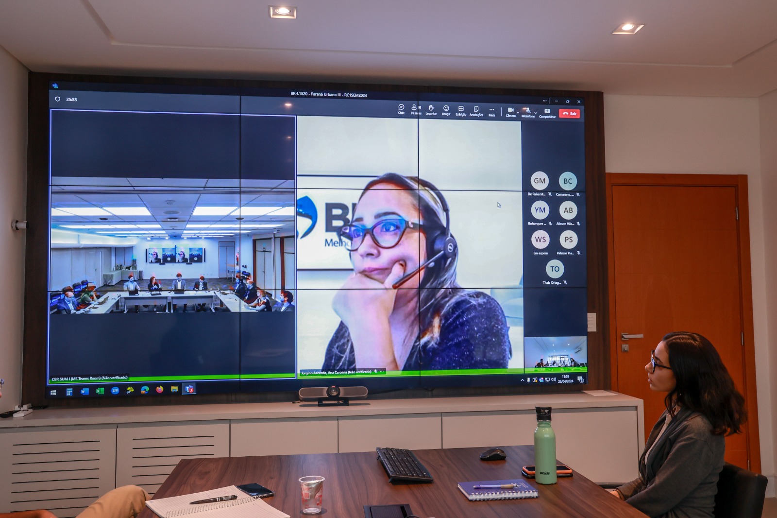 Em Curitiba, na sede do Paranacidade, técnicos acompanharam a reunião: o diretor administrativo e financeiro, Francisco dos Santos; a controladora geral da COI, Thaís Ortega; o analista de Desenvolvimento Municipal, David Piovesan; e o economista Clodoaldo Ribeiro.
