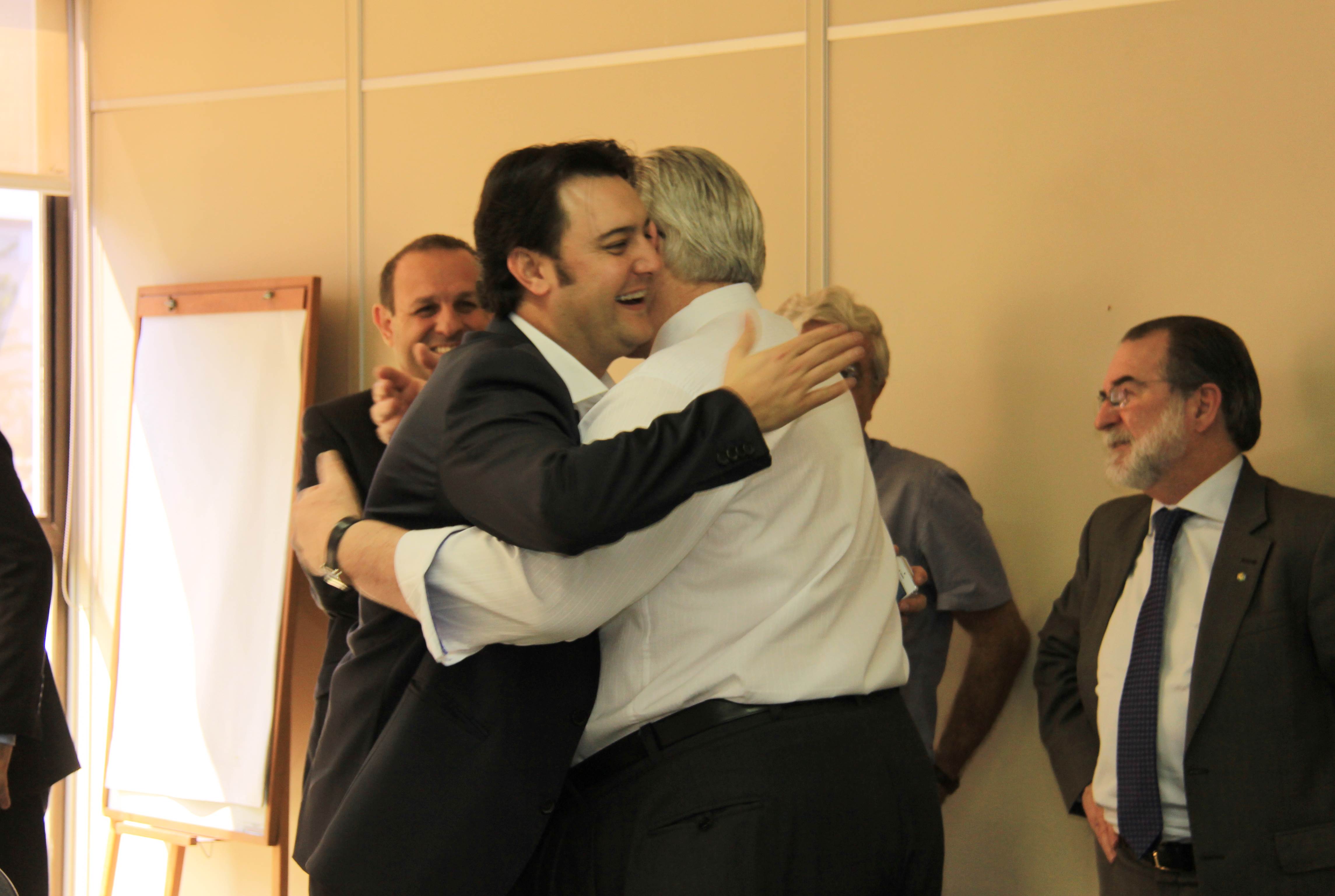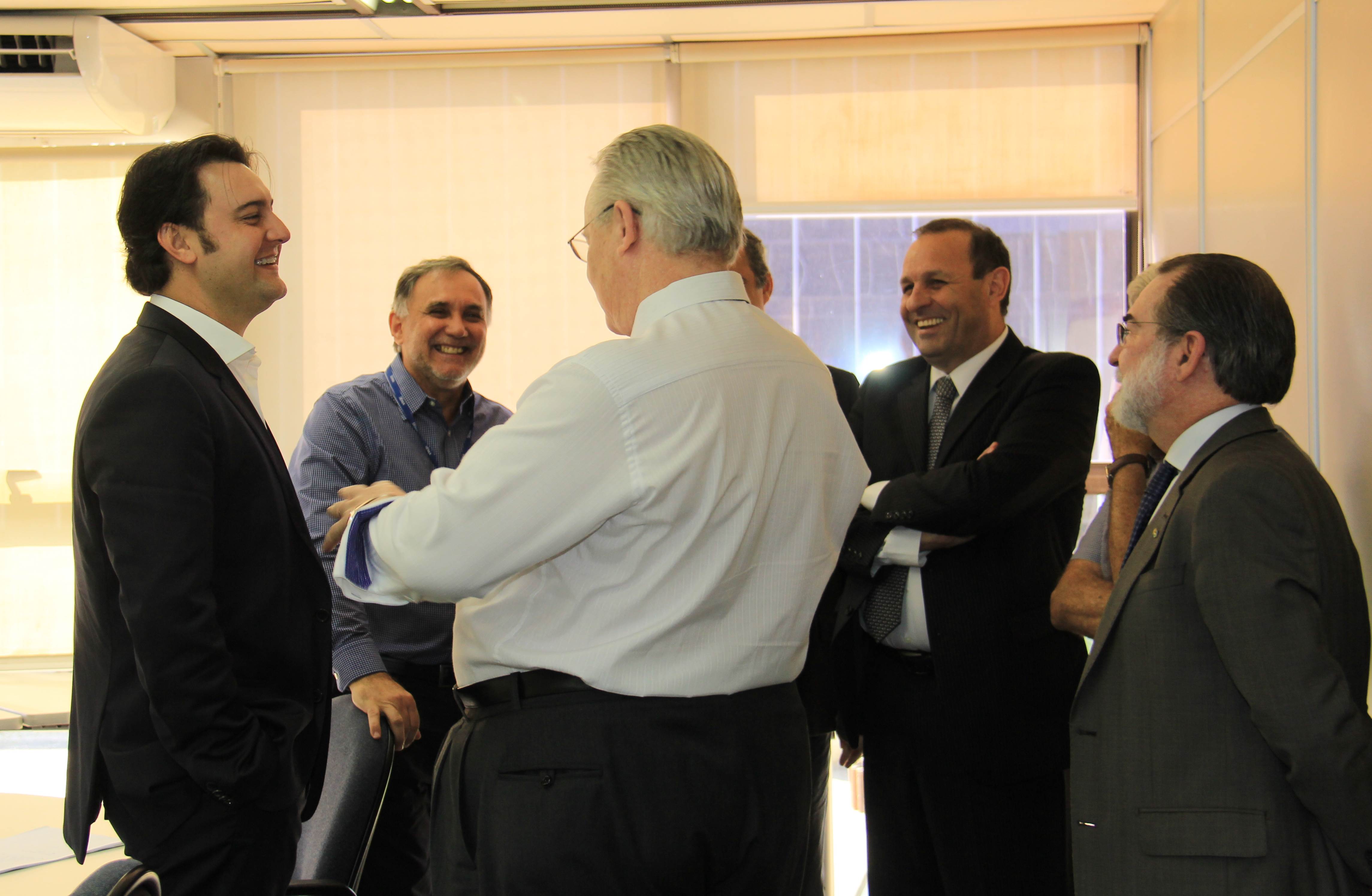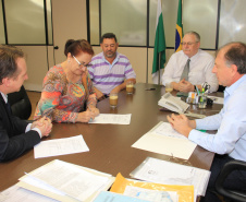 Nesta semana, em seu retorno da Europa, o secretário do Desenvolvimento Urbano (SEDU), Ratinho Junior, e o diretor geral da Pasta, João Carlos Ortega, receberam prefeitos, deputados e até a visita do ex-governador do Paraná, Orlando Pessuti, hoje, diretor Administrativo do Banco Regional de Desenvolvimento do Extremo Sul (BRDE). Na pauta do encontro projetos para apoiar todos os municípios do Paraná e, entre prefeitos e deputados, a questão da capacidade de endividamento municipal. Antes de abraçar Ratinho Junior, Pessuti acompanhou a prefeita de Jardim Alegre, Neuza Francisconi e os assessores dos deputados federal, Sérgio Souza, Adeilde de Souza, e do estadual, Artagão Junior, Wilson Pilarski, em audiência com Ortega sobre questões prioritárias à população de Jardim Alegre.