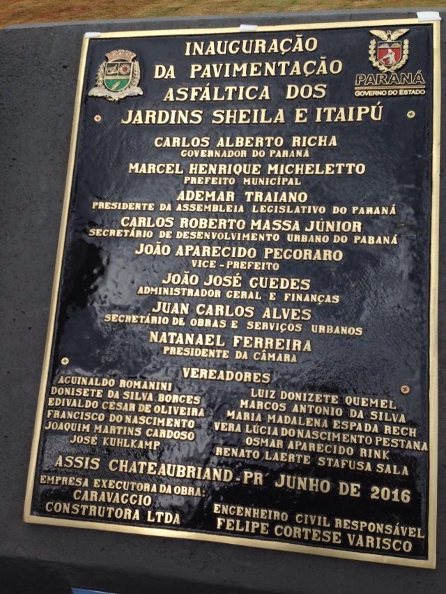 Com uma agenda cheia de compromissos, o secretário do Desenvolvimento Urbano (SEDU), Ratinho Junior, começou suas atividades às 10h30 desta quinta-feira, 30, em Assis Chateaubriand e depois foi para outros municípios daquela Região. Em Assis, recebido pelo prefeito Marcel Micheletto, secretários municipais, vereadores e outras lideranças locais, ele entregou edital de homologação, no valor de mais de R$ 1,7 milhão, para a compra de maquinários. Ainda participou da inauguração de pavimentação de ruas nos bairros Jardim Sheila e Itaipu. "Fico muito honrado e contente com esses bons resultados de recursos públicos empregados por meio de um trabalho honesto e comprometido com a população", disse Ratinho Junior, ao agradecer o carinho da recepção.