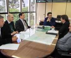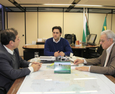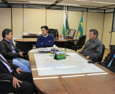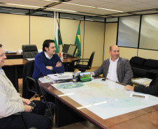 A manhã de trabalho na Secretaria do Desenvolvimento Urbano (SEDU) começou nesta terça-feira, 12, com a audiência ao secretário municipal de Urbanismo de Curitiba, Reginaldo Cordeiro. O secretário da Pasta, Ratinho Junior, o recebeu. Juntos, eles analisaram, discutiram projetos e obras estruturantes e necessárias para dar melhor qualidade de vida à população. Ambos apontaram os gargalos, os pontos frágeis e delicados da mobilidade, os que não estão totalmente concluídos e que podem causar problemas, até graves.