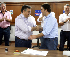 RENOVAÇÃO DE MAQUINÁRIOS - O secretário da SEDU destacou que o documento assinado em Apucarana faz parte de um programa criado para promover a modernização dos parques de máquinas dos municípios. “O maquinário é extremamente importante no dia a dia de uma prefeitura, tanto no atendimento das estradas rurais quanto na manutenção das vias urbanas. Quando o maquinário é muito antigo, há um custo de manutenção muito elevado e, com a renovação há economia e mais conforto para o motorista”, observou.