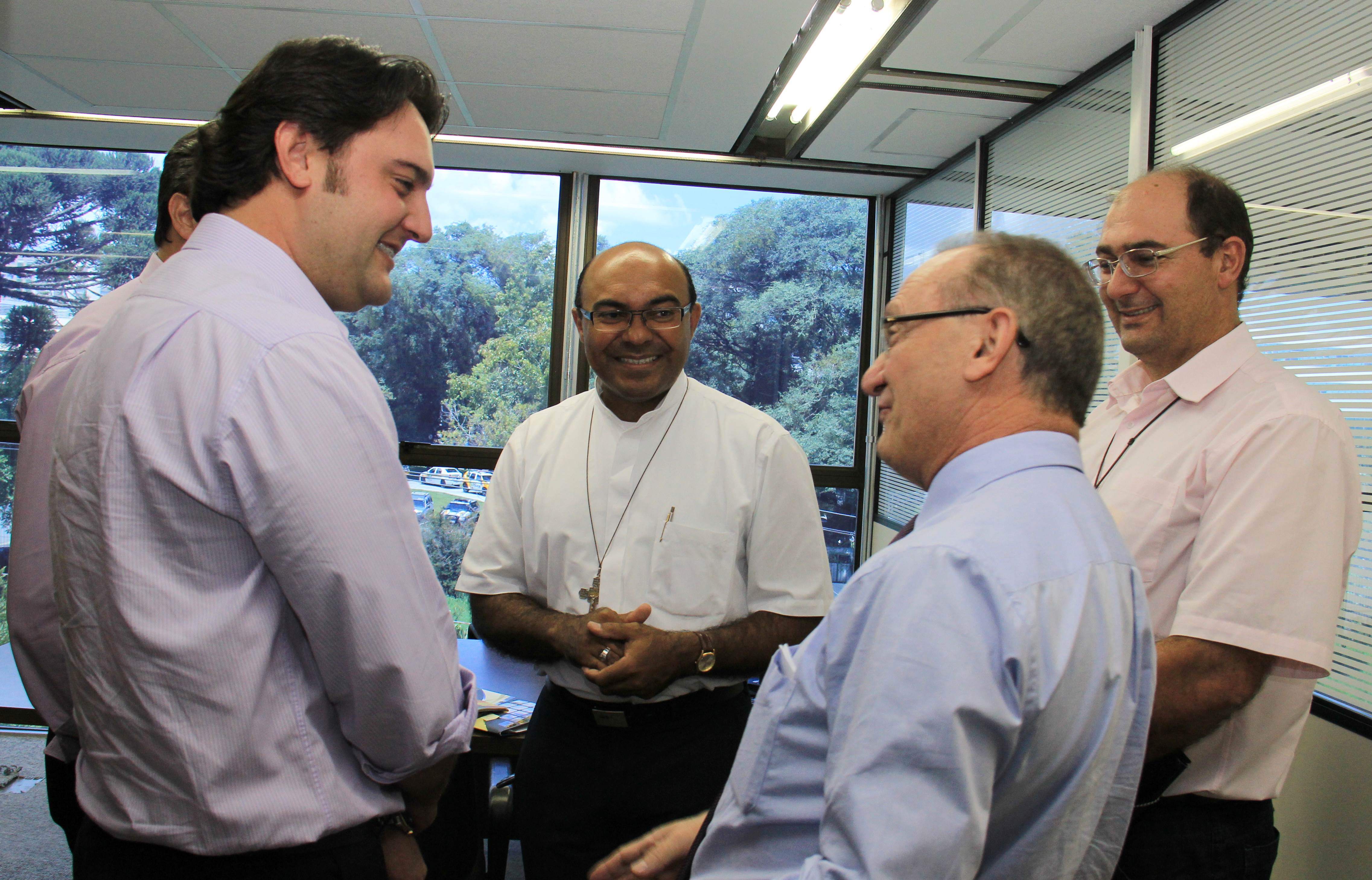 No meio do trabalho desta quarta-feira, o secretário abriu espaço para receber dois amigos, o padre José Messias, do Santuário Nossa Senhora de Fátima, de Campina Grande do Sul, na Região Metropolitana de Curitiba, e o padre Luiz Carlos Mussolini, da Paróquia São Francisco de Assis, de Tunas do Paraná. “Viemos dar um abraço em Ratinho Junior e dizer que estamos juntos e oferecermos todo o nosso apoio e benção. Este menino tem um coração de ouro e uma missão importante para desempenhar junto ao povo”, disse o padre Messias que conhece e acompanha Ratinho Junior desde que ele era adolescente.