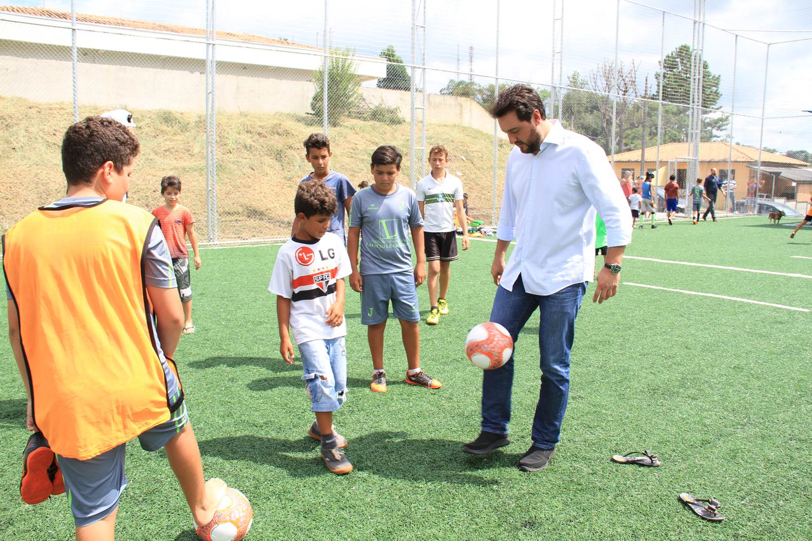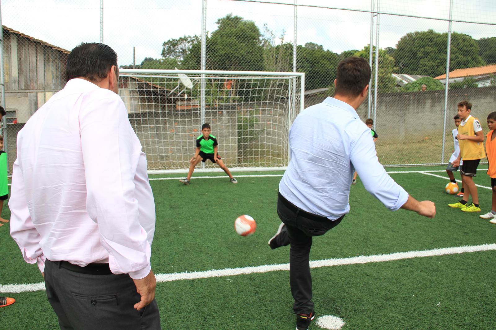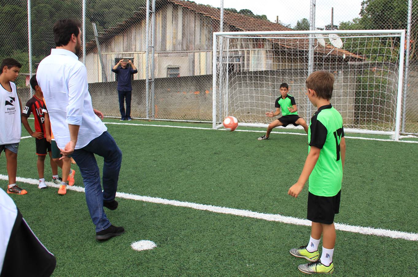 FESTA DAS CRIANÇAS - Além do secretário Ratinho Junior, o prefeito Abimael do Valle, recebeu os deputados estaduais Guto Silva e Hussein Bakri, diversas autoridades e políticos daquela Região. A obra inaugurada fez a festa de crianças e adolescentes daquela cidade. Ratinho Junior e os dois deputados não resistiram e fizeram algumas jogadas. Os três bateram pênaltis com as crianças. Ratinho Junior ainda fez “embaixadinhas” com os pequenos. “Será montada uma Escolinha de Futebol para oito Núcleos Municipais de Educação”, adiantou o professor de Educação Física daquele município, Rodrigo Falcoski.