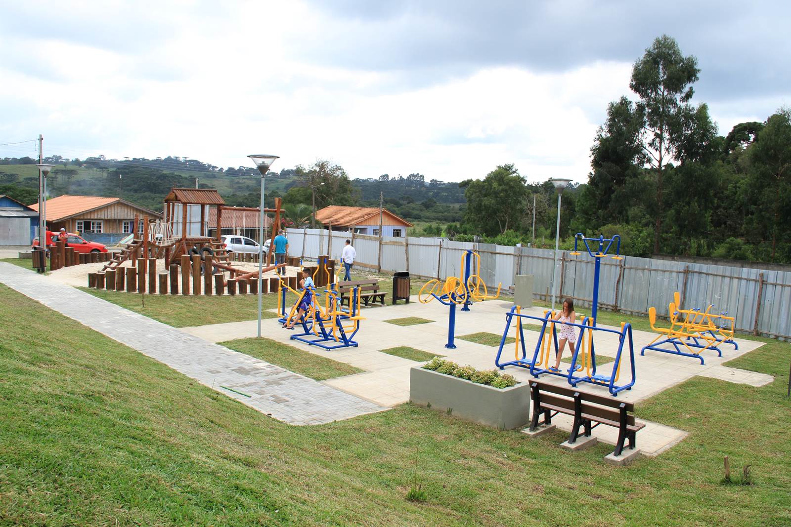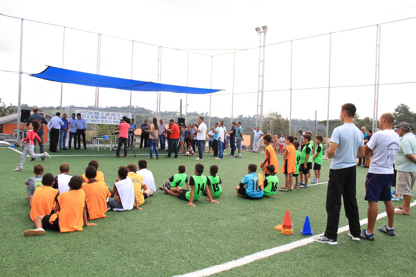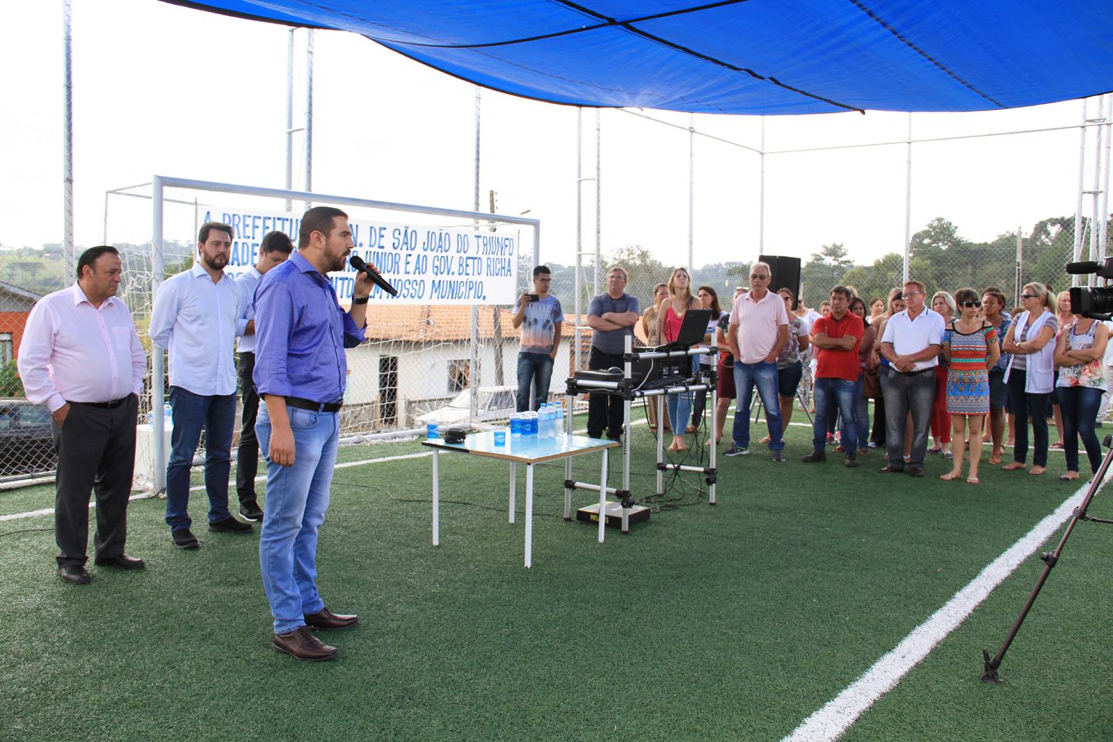 O secretário do Desenvolvimento Urbano (SEDU), Ratinho Junior, inaugurou às 10h30 desta terça-feira, 07, em São João do Triunfo, o primeiro conjunto completo do Programa “Meu Campinho”. Uma ideia trazida da Alemanha, por Ratinho Junior, para baratear o custo da obra e dar oportunidade de lazer e de um futuro melhor às crianças e adolescentes, retirando-os dos riscos das ruas. O conjunto ainda oferece espaços de lazer às pessoas da terceira idade, com uma Academia ao Ar Livre, e às crianças menores, com um Parque Infantil. “Aplicando grama sintética, crianças podem jogar futebol da mesma maneira que jogam as crianças de um País como a Alemanha, até descalças, e começar a mudar o rumo de suas vidas para um futuro melhor e com mais dignidade. Há também lazer para toda a família, dos vovôs até os netinhos, em um mesmo local”, atesta Ratinho Junior.