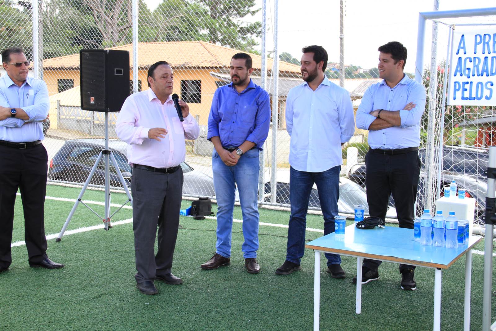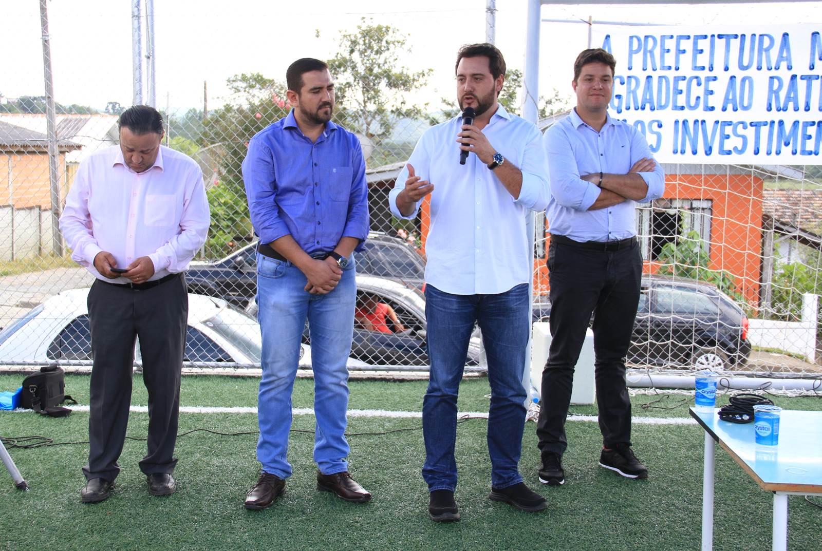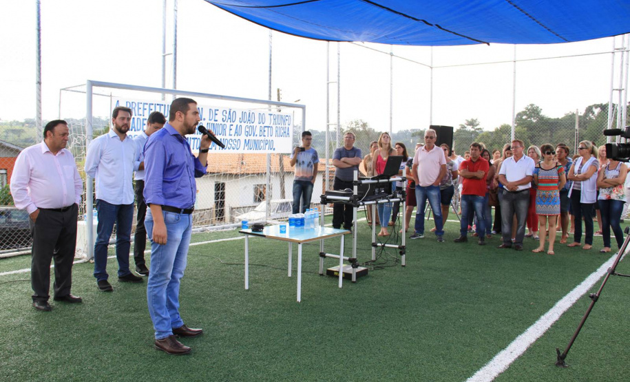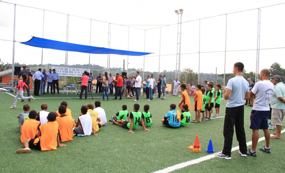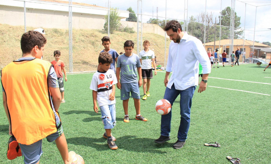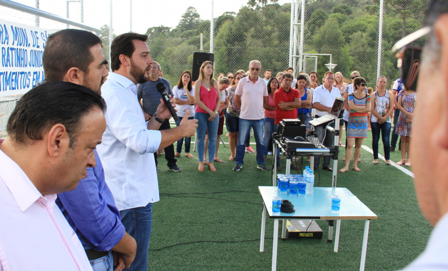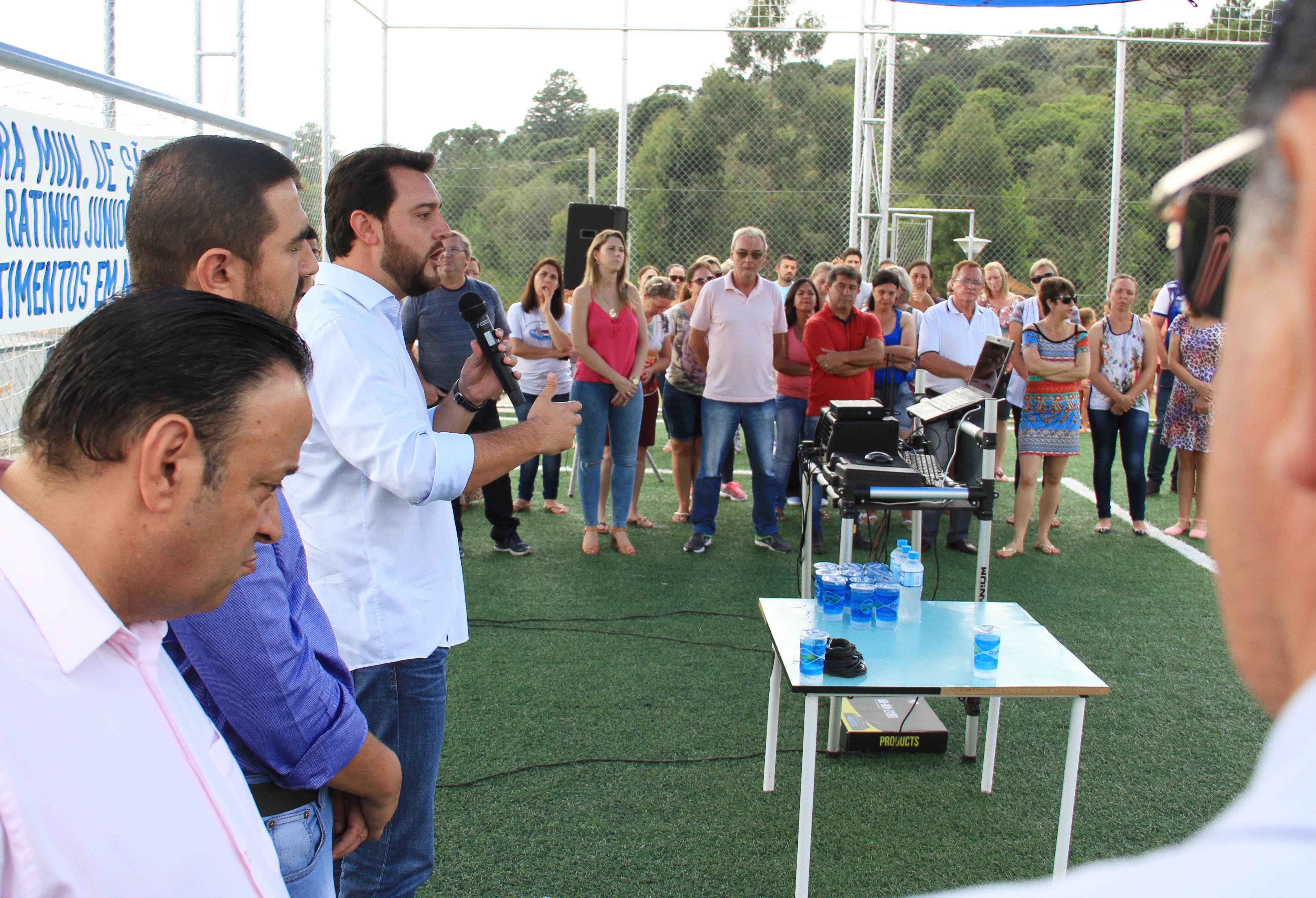 Em sua fala, o secretário Ratinho Junior lembrou que a Organização Mundial da Saúde disse que a doença deste século é a depressão. Porque hoje o filho fica muito mais no celular do que conversando com o pai ou o pai fica muito mais tempo na Internet trabalhando, do que convivendo com o seu filho, sua família. “E este Meu Campinho é um ambiente onde damos a oportunidade para que as famílias se reúnam no final de semana. Para que possa existir, também, um contra turno escolar para que a criançada saia da escola e venha aqui jogar bola, aprender, fazer exercícios, e não fique aprendendo coisa errada na rua. Então, o meu muito obrigado a todos. Parabéns prefeito, parabéns à equipe e aos deputados que chancelaram todo esse projeto para a nossa cidade”, disse Ratinho Junior.
