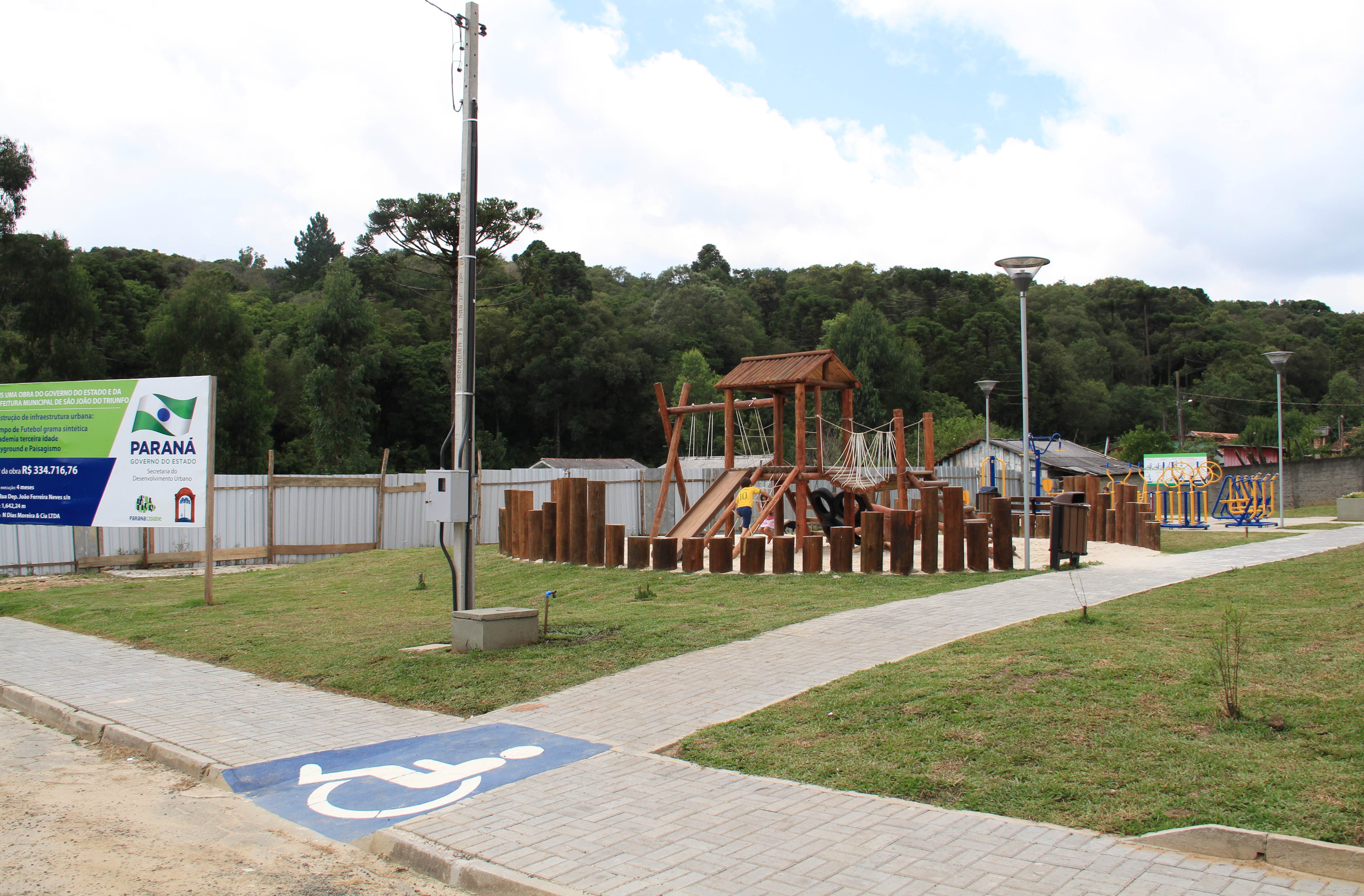 Em São João do Triunfo, a obra recebeu recursos no valor de R$ 334.716,76, pelo Programa de Transferência Voluntária da SEDU. Ou seja, os recursos não precisam ser devolvidos aos cofres do Estado. Naquele município da Região Sudeste do Paraná, a obra de infraestrutura urbana, no Bairro Baixada, na Rua Deputado João Ferreira Neves, s/n, contém um campo de futebol com grama sintética, Academia para a Terceira Idade, um Parque Infantil, paisagismo, instalações elétricas e hidros sanitárias, além de placas de sinalização, em uma intervenção de 1.642,24 m2. Mas há uma contrapartida municipal de R$ 16.735,83.