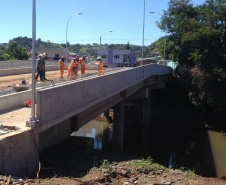 Ainda, no mesmo dia, às 16 horas, Ratinho Junior foi até Francisco Beltrão, onde, na Prefeitura local o prefeito, Cleber Fontana, e lideranças o aguardavam. Depois, junto com o prefeito, Ratinho Junior vistoriou a obra da ponte sobre o Rio Marrecas, na Rua Octaviano Teixeira dos Santos, que liga as Avenidas Guiomar Lopes e Presidente Getúlio Vargas, em uma extensão de 72 metros. A obra tem um custo de R$ 2.725.101,76, pelo Sistema de Financiamento aos Municípios (SFM). “Esta ponte é uma demanda da população de muitos anos”, lembrou Ratinho Junior.