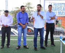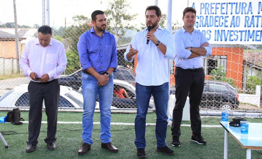 Já, o prefeito Abimael falou de sua satisfação em receber Ratinho Junior. “Secretário, parabéns por este belíssimo projeto que atende a comunidade da baixada. Baixada que recebeu pavimentação pela administração anterior e, agora, recebe este campinho. Baixada que tem também a creche, que com certeza, na minha gestão, vamos trazer mais obras para a nossa gente. Tenho certeza que juntos vamos oferecer serviços com eficiência para toda a população”, destacou o prefeito.