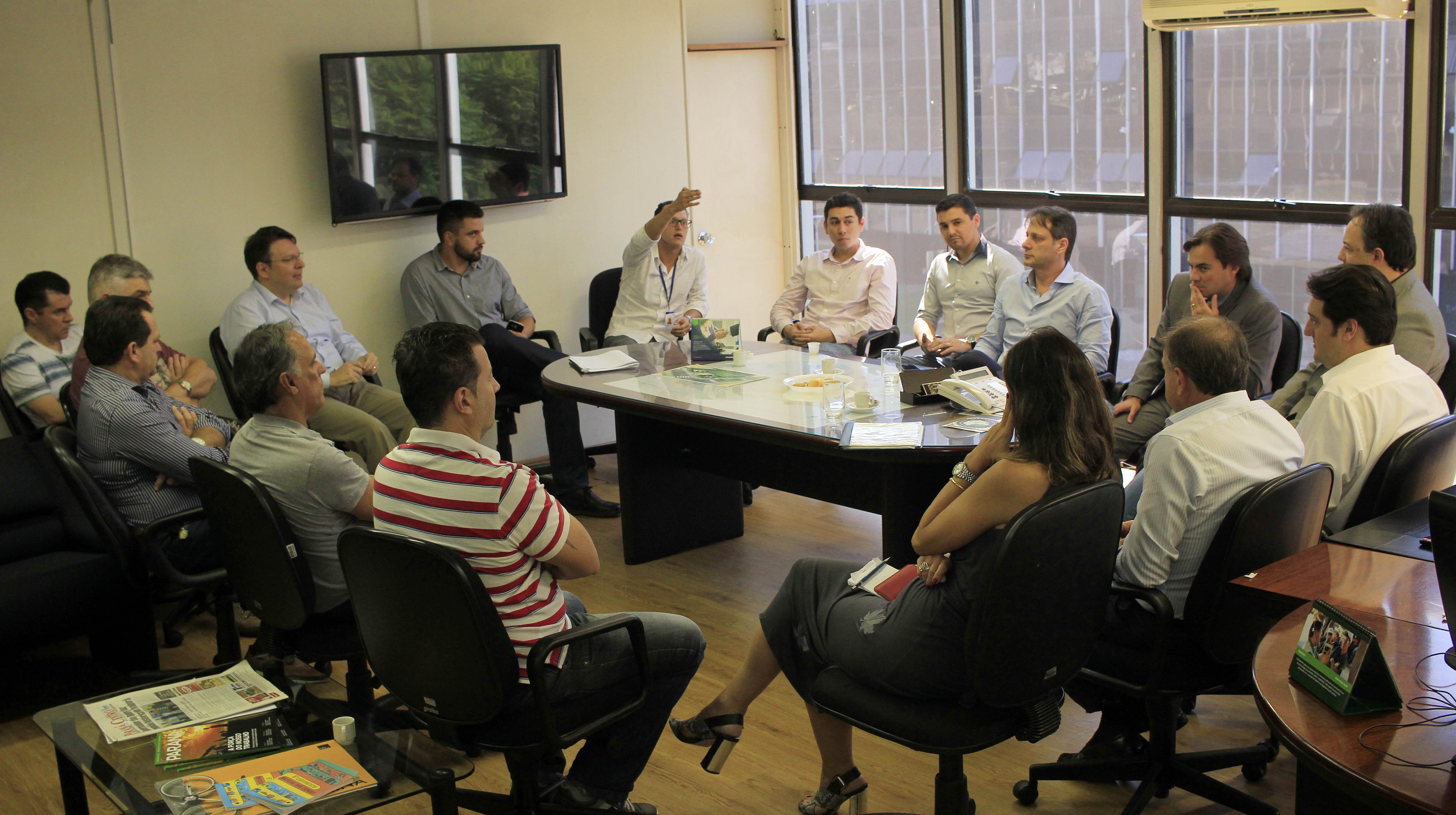 Diretores técnicos e coordenadores do Serviço Social Autônomo - Paranacidade -, reuniram-se, na manhã desta quinta-feira, 07, com o secretário do Desenvolvimento Urbano (SEDU) e superintendente do Paranacidade, Ratinho Junior, para analisar dados técnicos, discutir orçamentos, priorizar projetos e analisar as metas e resultados de contratos de gestão em cada setor. "As metas de liberação de recursos foram superadas em 180% neste ano. Vemos obras concluídas e muitas em fase de conclusão, beneficiando a vida da população", disse Ratinho Junior.