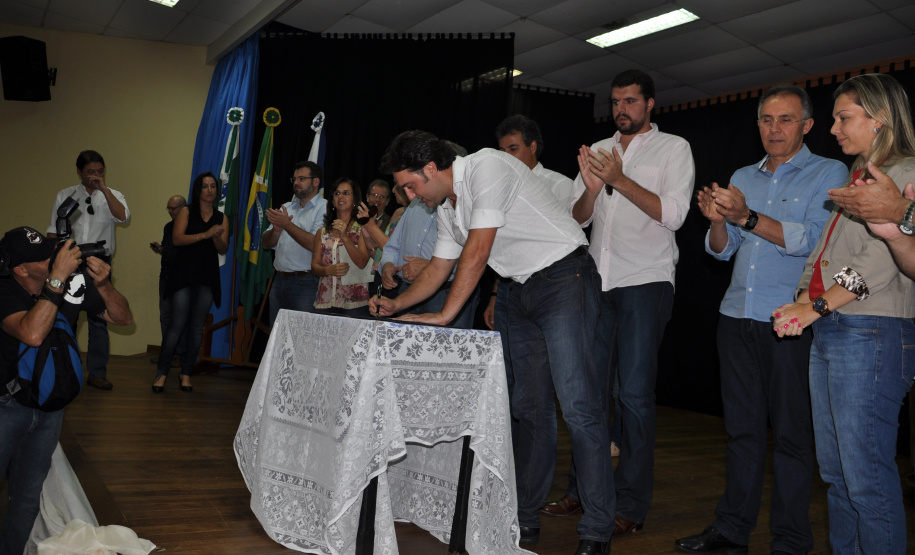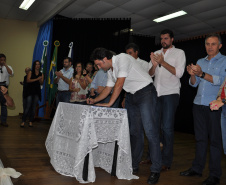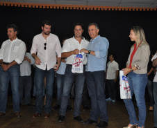 DE MANHÃ, EM TIGABI - O secretário Ratinho Junior esteve ainda no município de Tibagi, às 11 horas, com a Prefeita Angela Mercer de Mello, para autorizar licitação no valor de R$ 862.380,00, pelo Programa de Apoio à Aquisição de Máquinas e Equipamentos Rodoviários para as Prefeituras (PROMAP). O documento vai permitir a compra de dois caminhões caçambas basculantes e duas ambulâncias.
